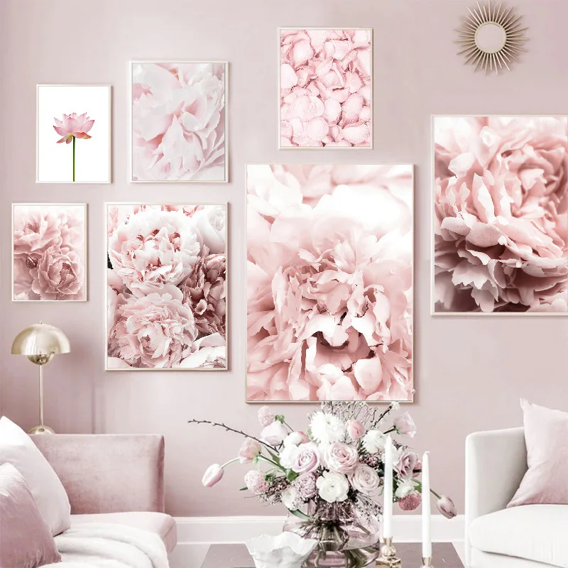 Современные цветы, Розовый пион, скандинавский домашний декор, картины, постеры, картина маслом и принты, гостиная, домашний декор, холст, настенное искусство