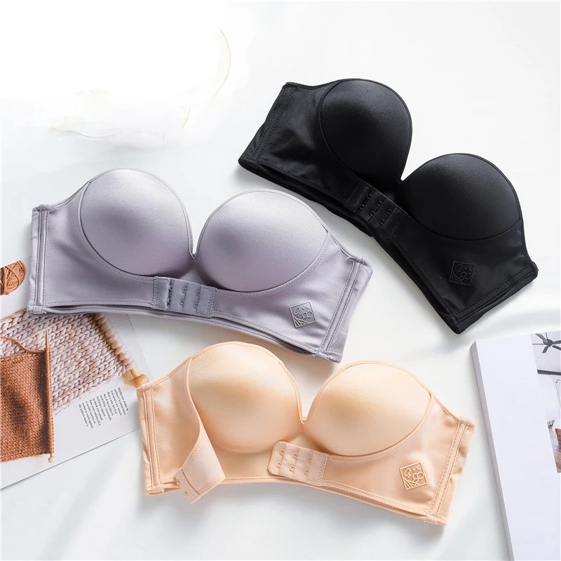 Женский бюстгальтер пуш-ап без бретелек, с застежкой спереди