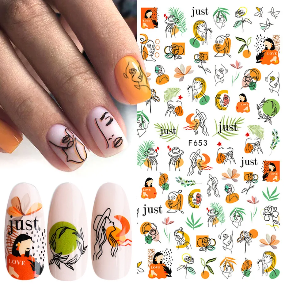 Геометрическая Женская лицевая наклейка для ногтей, цветы, листья, ...