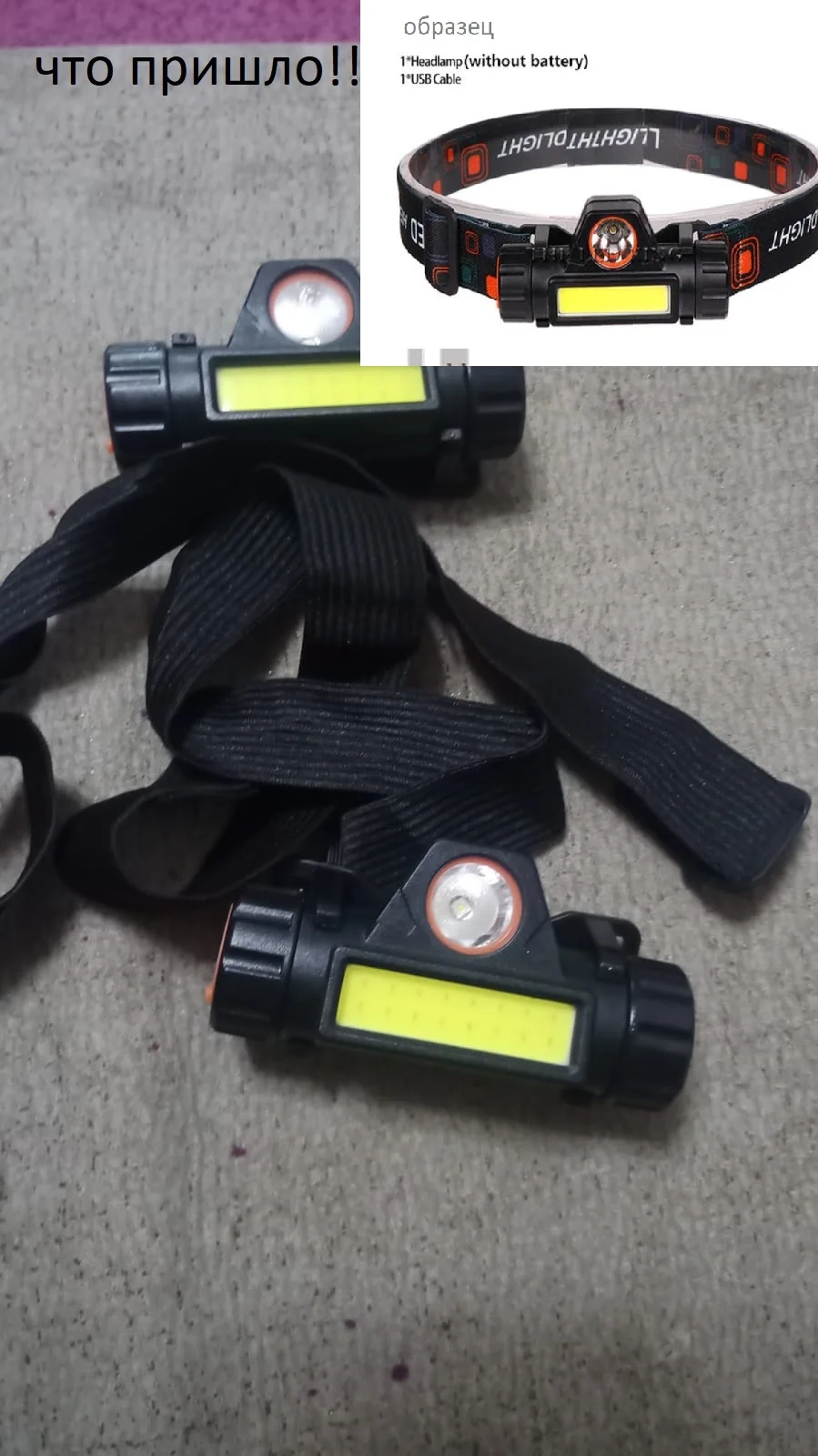 I received The product. Фонарик, как видно на картинке. Эластичная лента не то, что предлагает изображение