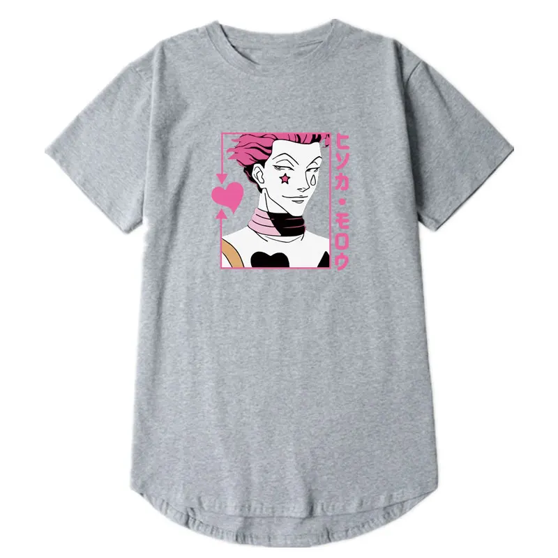 Охотник Футболка Для мужчин хлопок отличная футболка с вырезом лодочкой короткий рукав хисока Morow футболка аниме Harajuku футболка