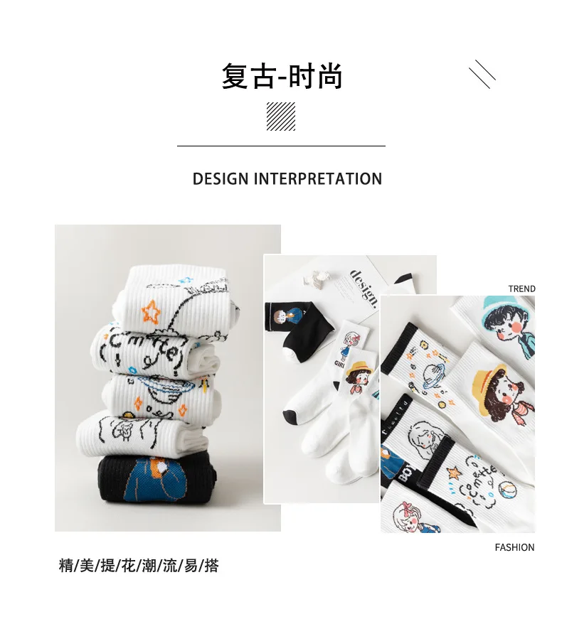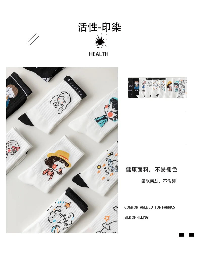 Носки женские с мультяшным рисунком, уличная одежда, хлопковые милы...