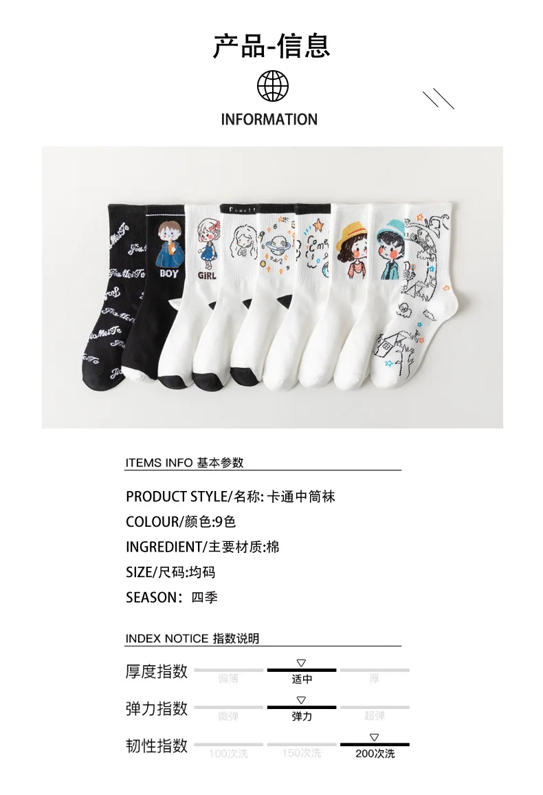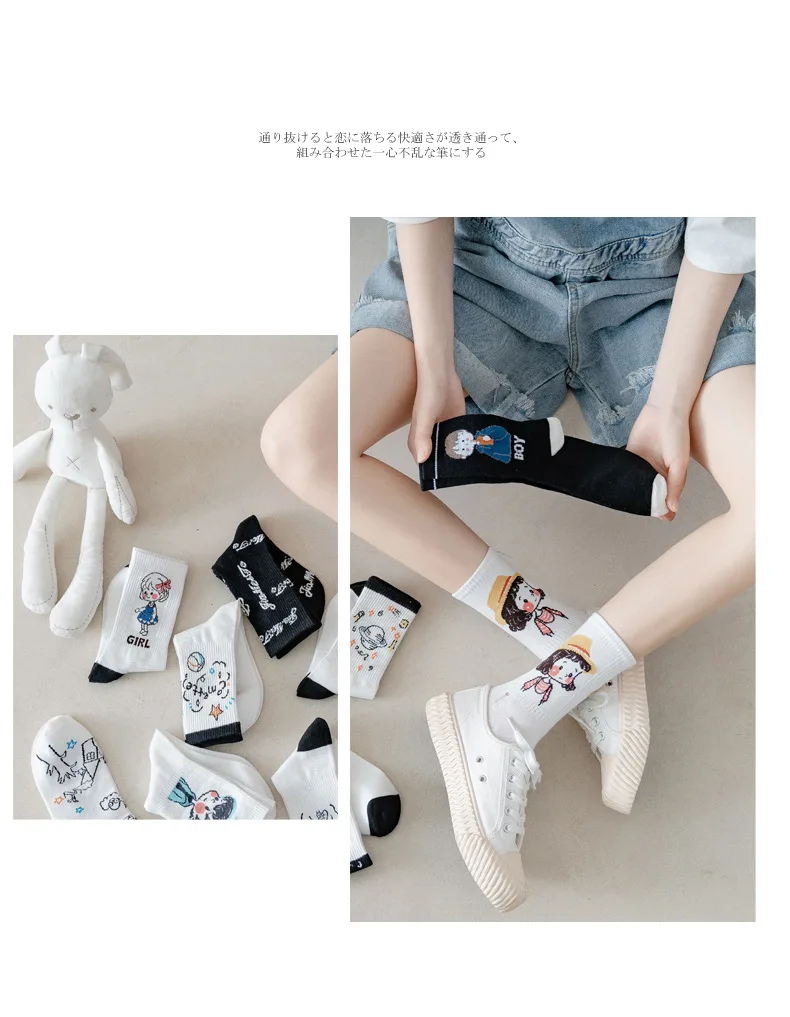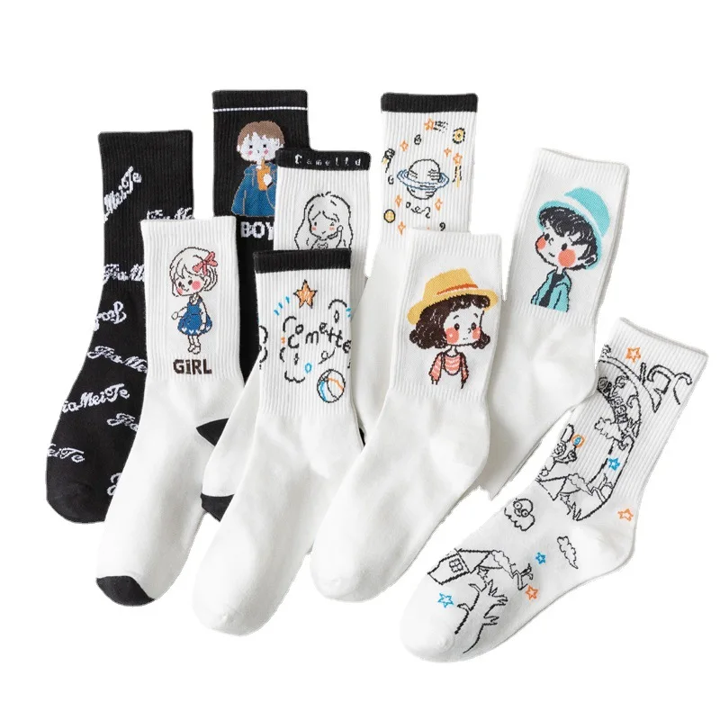 Женские забавные носки 1 пара, уличная одежда для скейтборда в стиле Харадзюку, носки с мультяшным рисунком, Модные дышащие черные и белые хлопковые носки