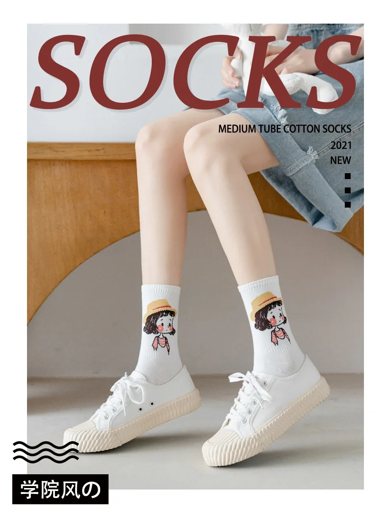 Носки женские средней длины, модные чулки из чесаного хлопка, в япо...