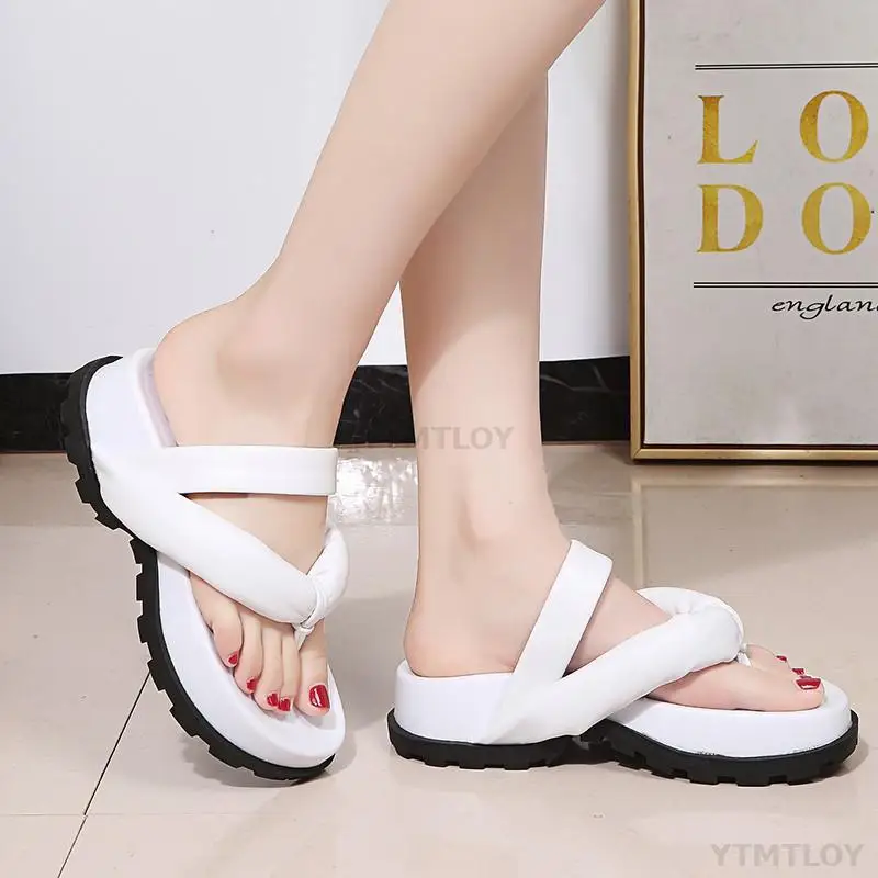 Женские шлепанцы на танкетке Ytmtloy, сандалии без задника на высоком каблуке, летние домашние тапочки, белые