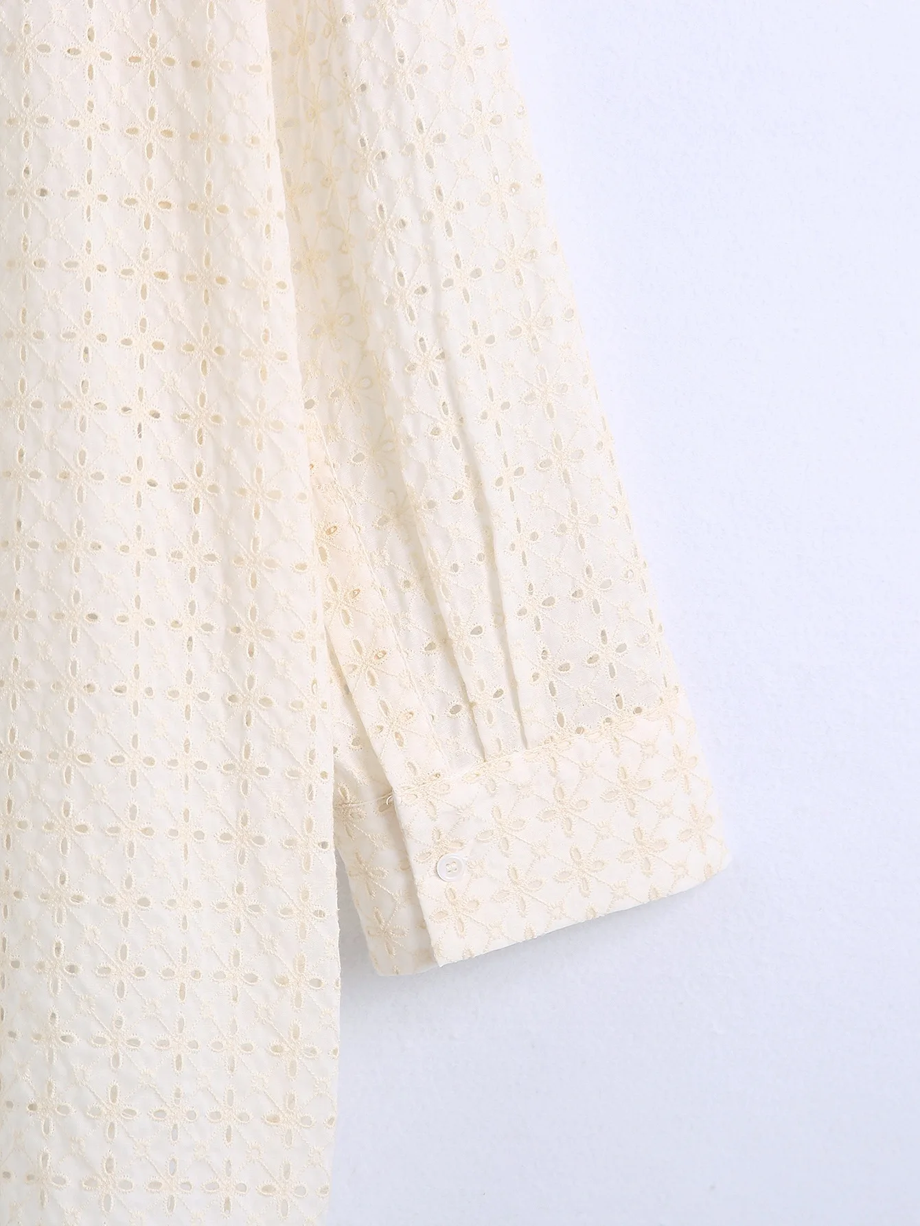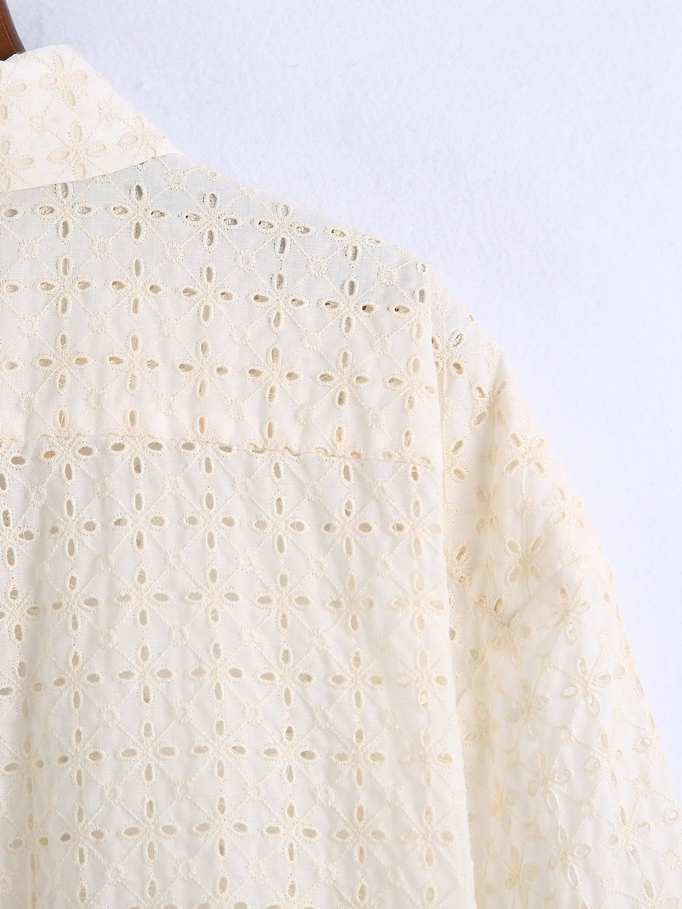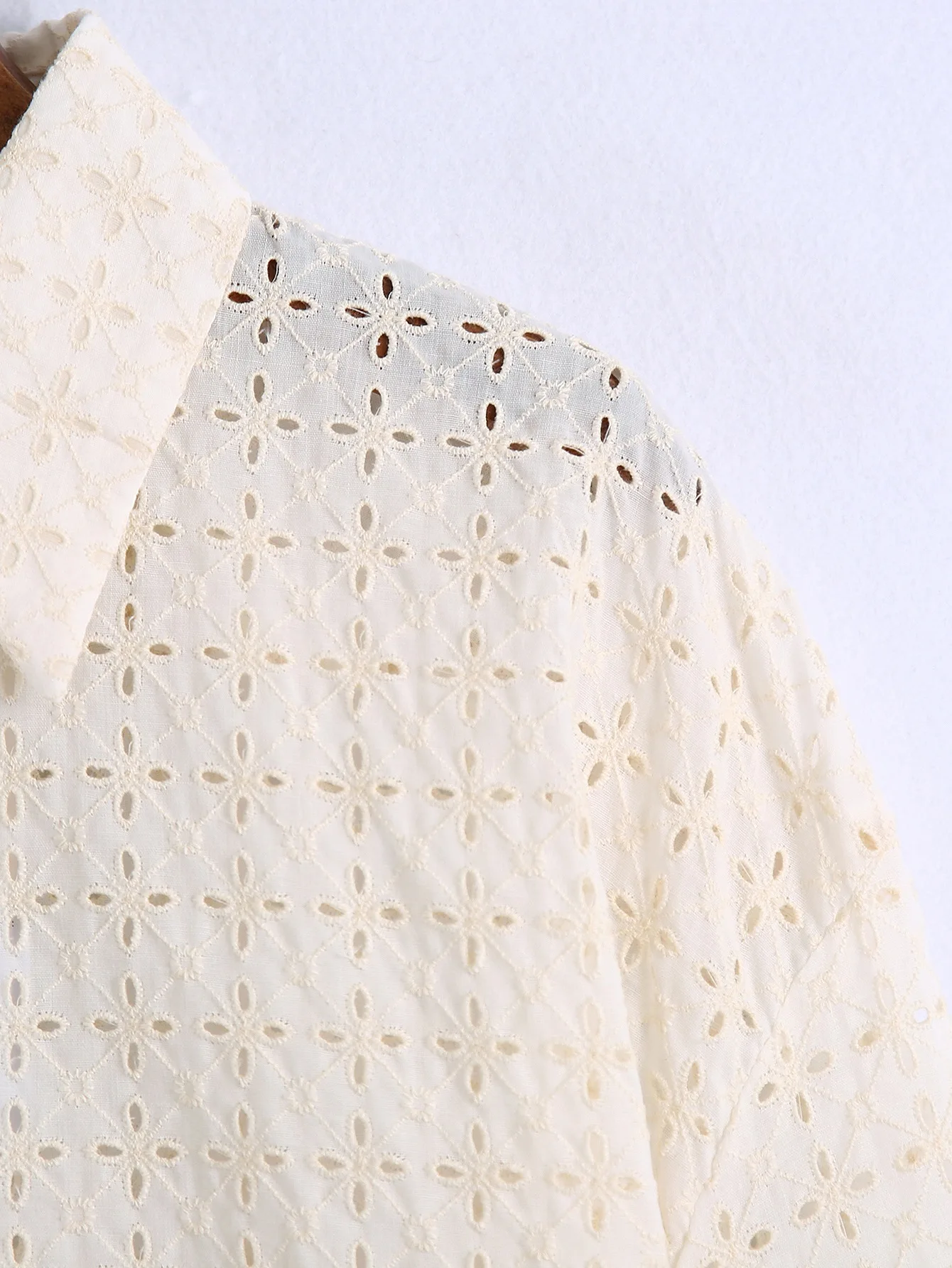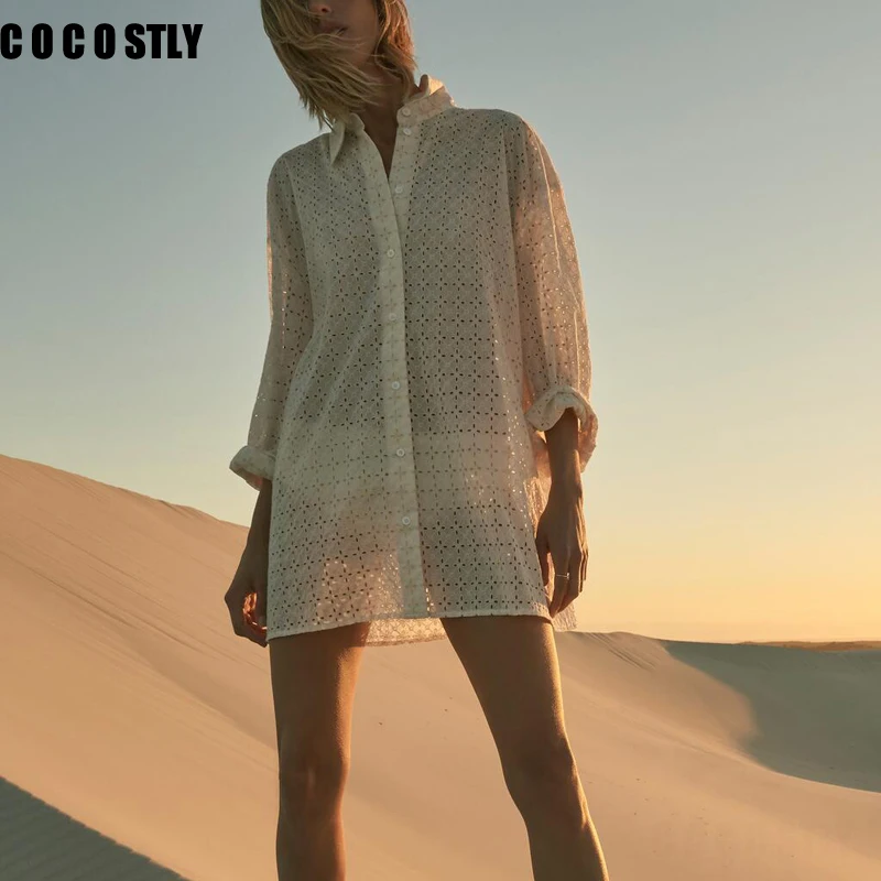 Женская винтажная блузка с вышивкой, полупрозрачная рубашка большого размера с вырезами и длинным рукавом, на пуговицах, Новинка лета 2022