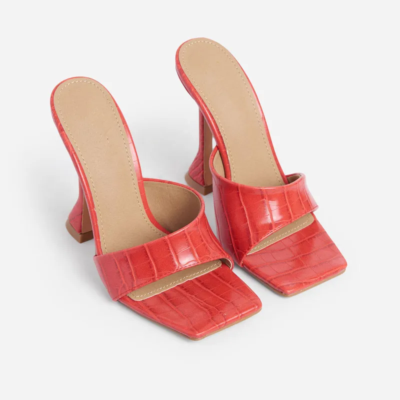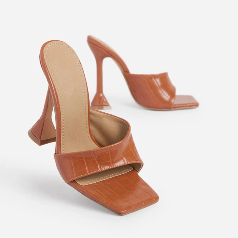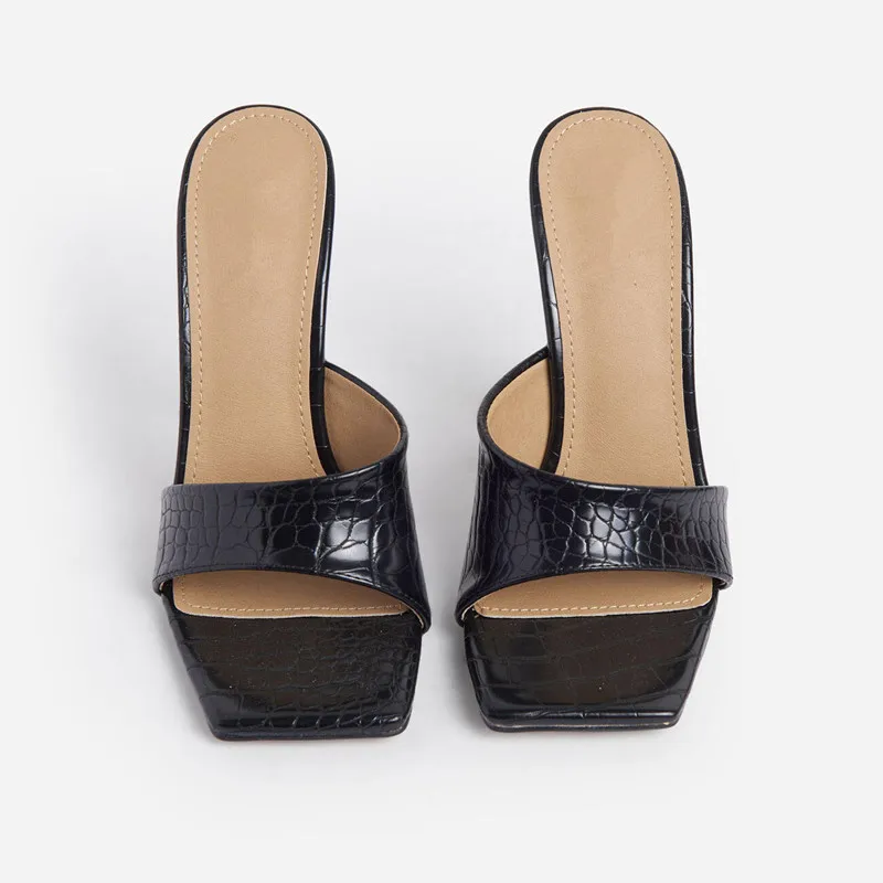 Шлепанцы женские на высоком каблуке, сандалии со змеиным принтом, к...