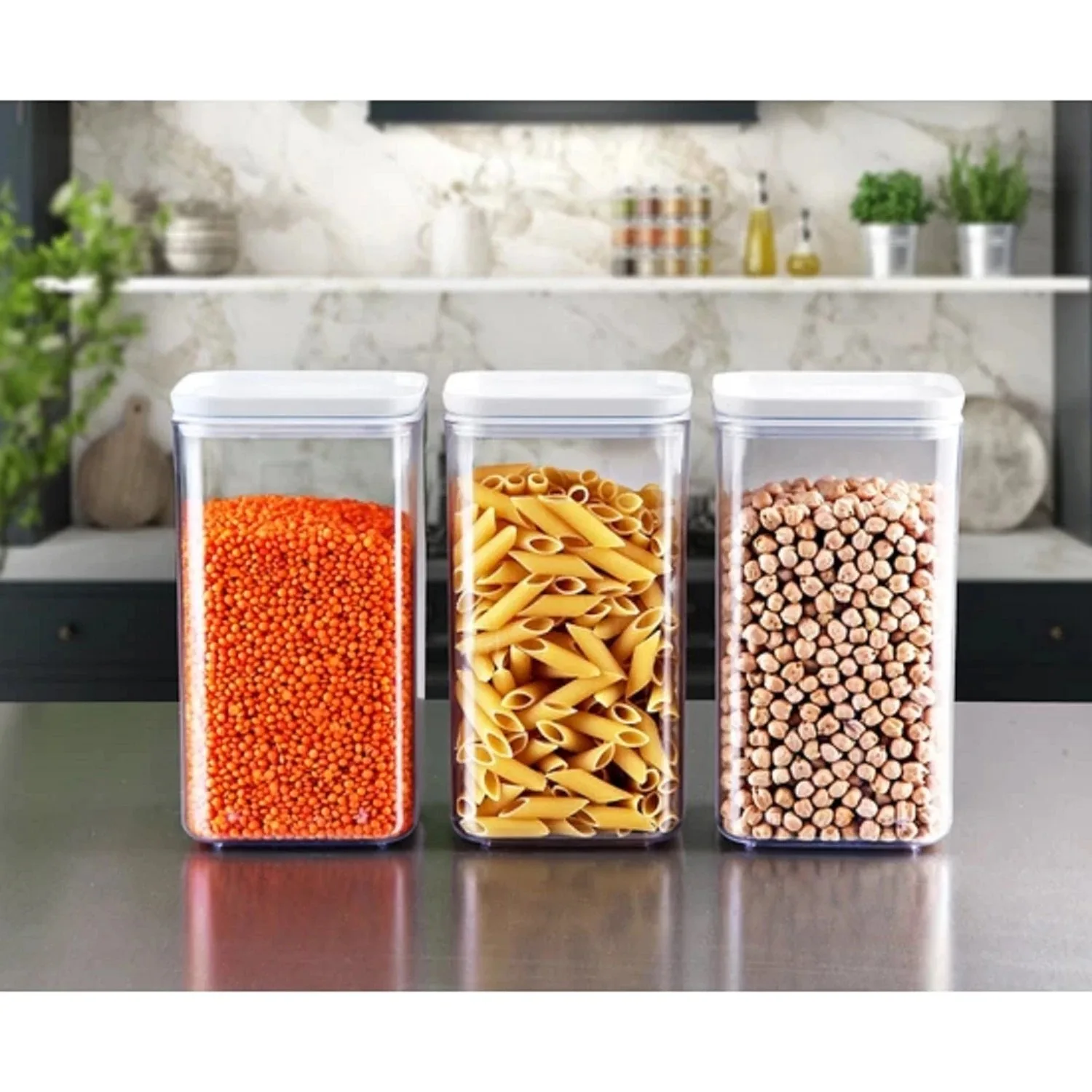 Набор контейнеров для хранения 3 шт., кухонный органайзер для еды, пластиковый холодильник, Квадратные прозрачные Герметичные банки лапша, рис, паста