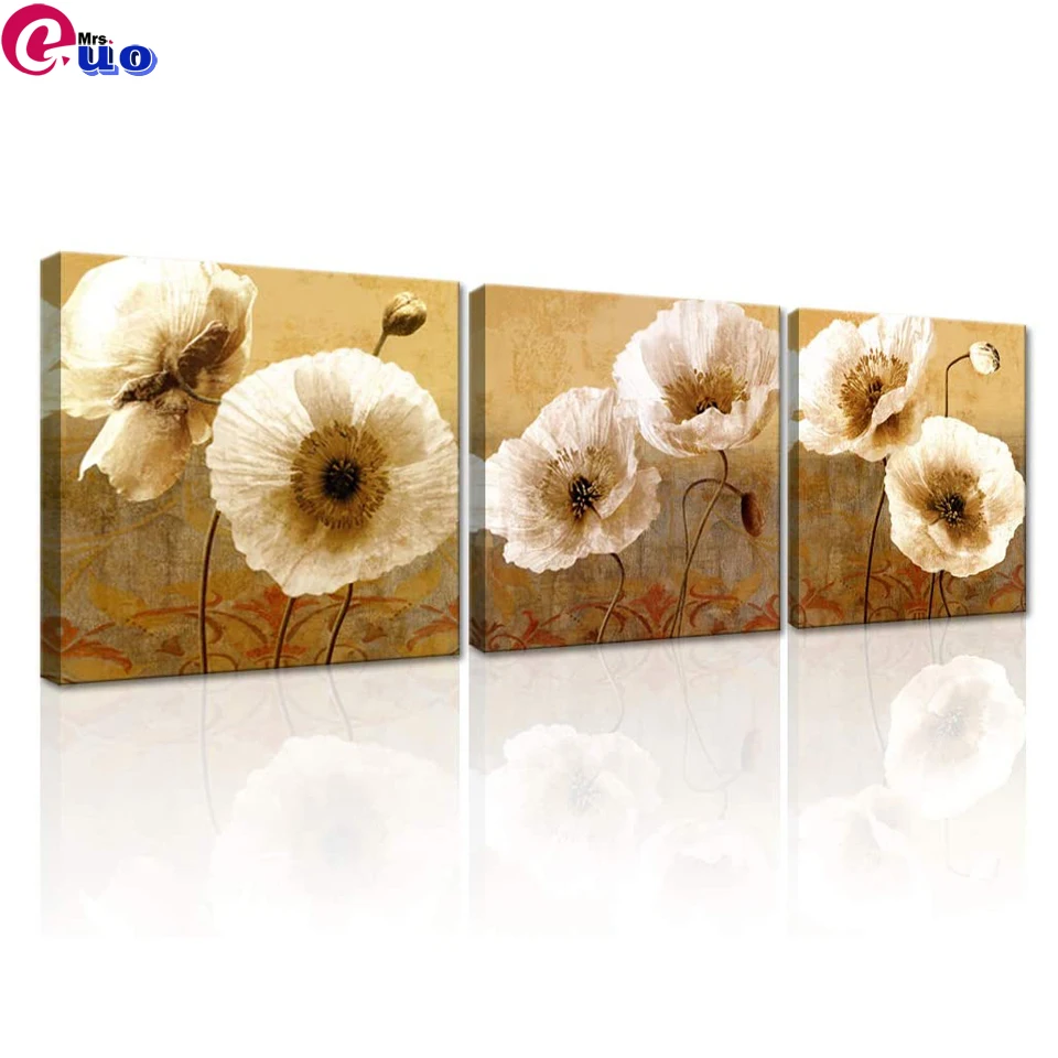 Триптих Алмазная вышивка цветок Поппи холст настенная живопись 3 предмета цветок бриллианты живопись бежевые цветы украшение для гостиной