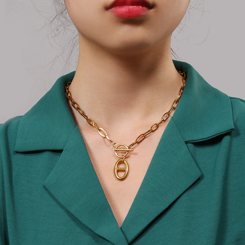 Ожерелье женское из нержавеющей стали с подвеской в виде свиньи и носа