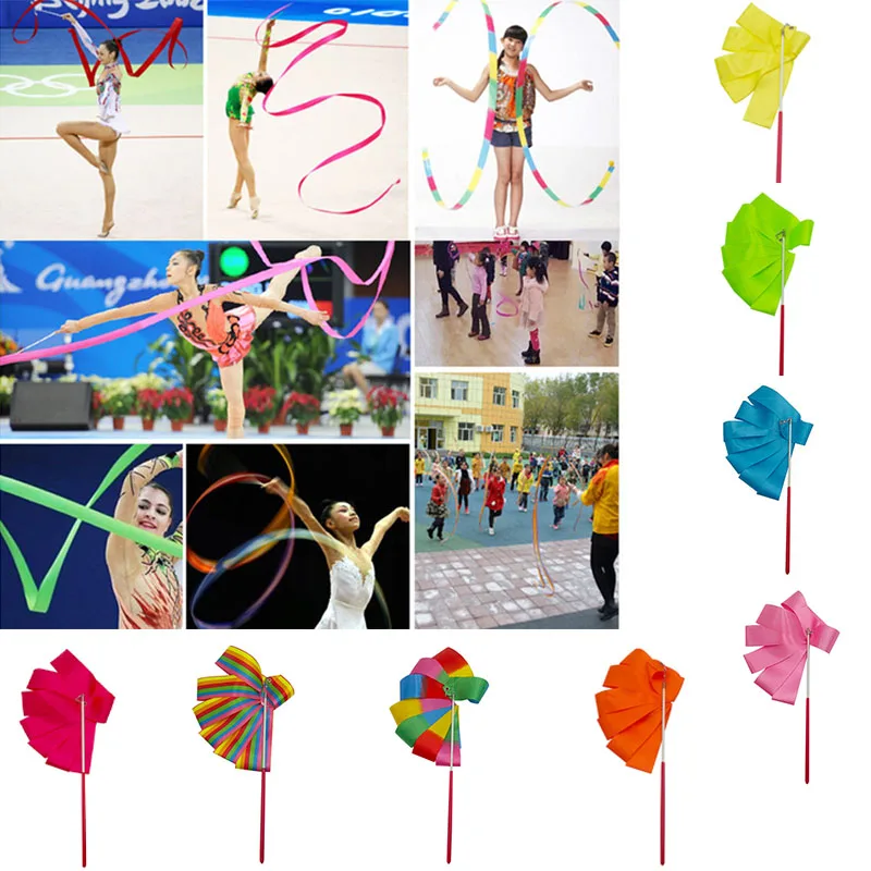 2 м4 м Красочные Тренажерный зал ленты для танцев художественной художественная гимнастика балет стример вертя стержень ручки для тренажерного зала профессиональный
