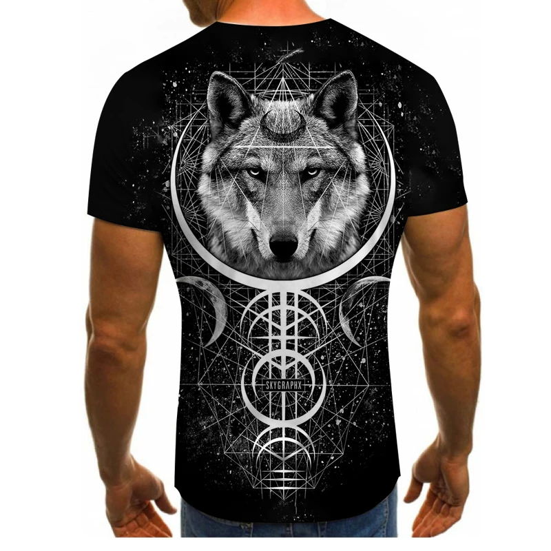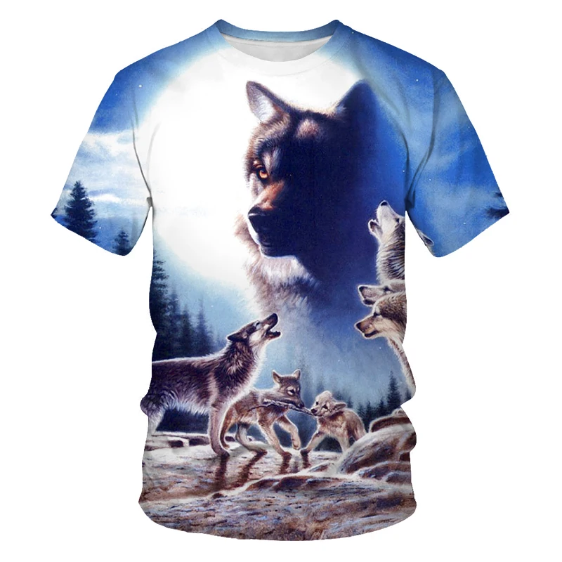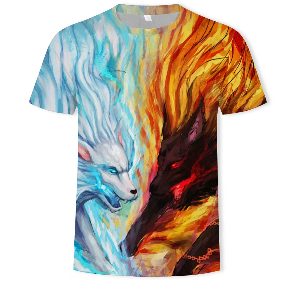 Прямая продажа с китайской фабрики, Мужская футболка с 3D принтом на заказ, лиса и волк, футболка с графическим рисунком, Повседневная Уличная Одежда большого размера