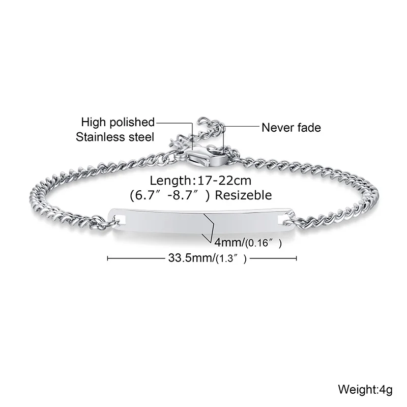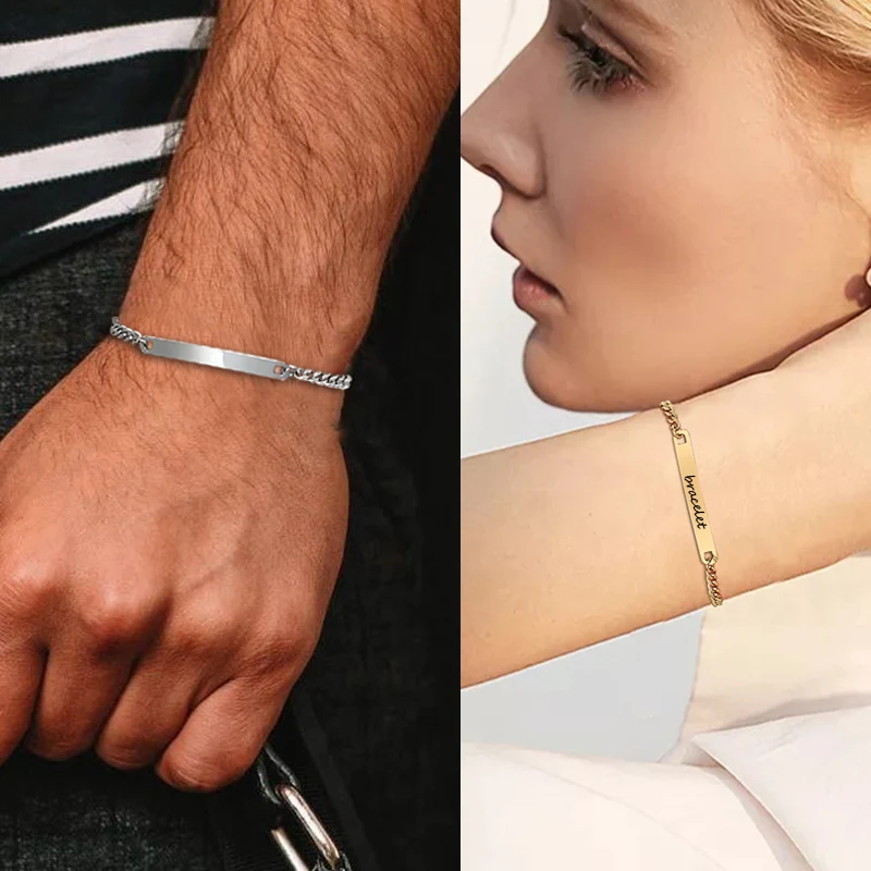 Классический ID горизонтальный браслет, нержавеющая сталь гравируемые Тощий бар браслеты для мужчин и женщин ювелирные изделия