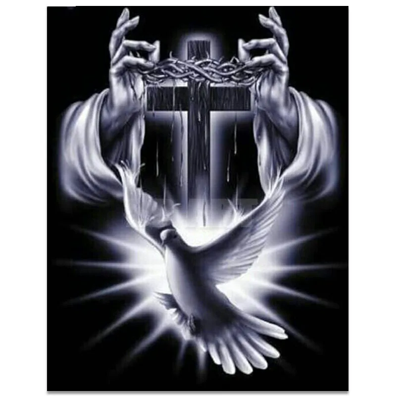 Алмазная живопись 5D, полностью квадратнаякруглая, религия, Иисус Христа, крест, голубь, Алмазная мозаика, стразы, вышивка крестиком, Хрустальный Декор