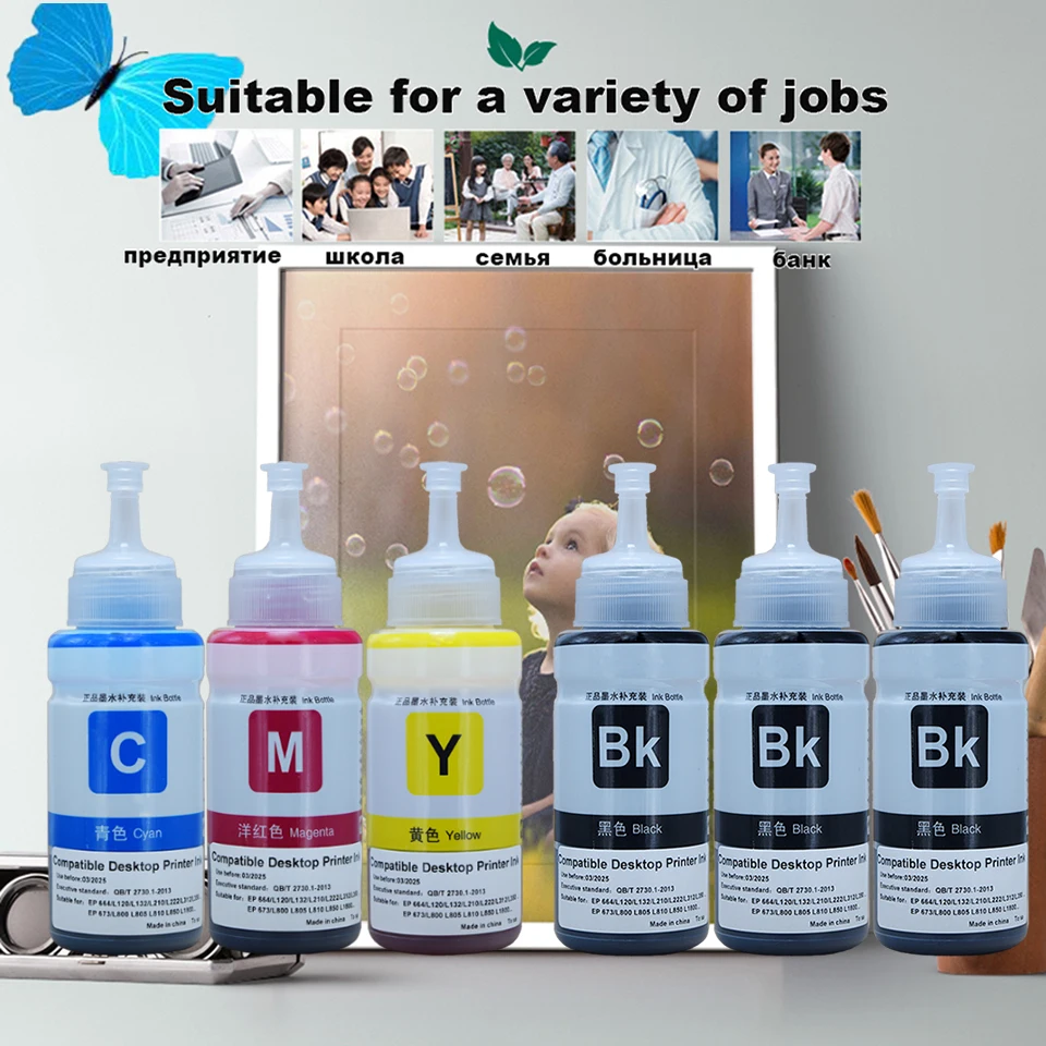 Черная накладка для принтера Epson t664, 6 шт., для epson L120 L132 L210 L222 L312 L350 L355 L362 L382 краска для Тера