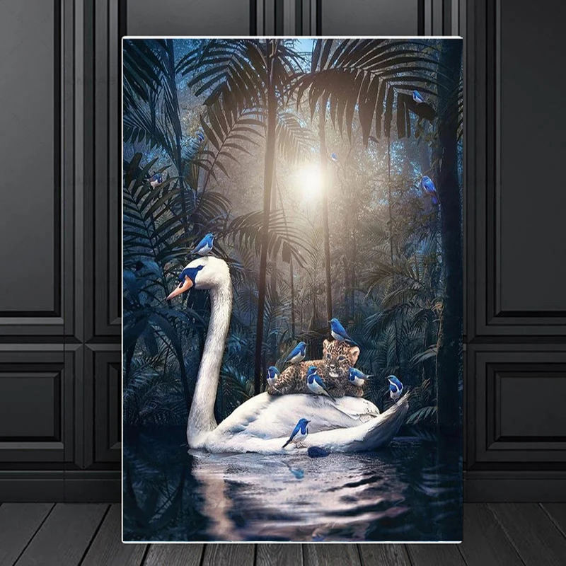 Алмазная картина 5D сделай сам, мозаика с лебедем, леопардом, квадратной вышивкой, с птицами, животными, украшение для дома, подарок