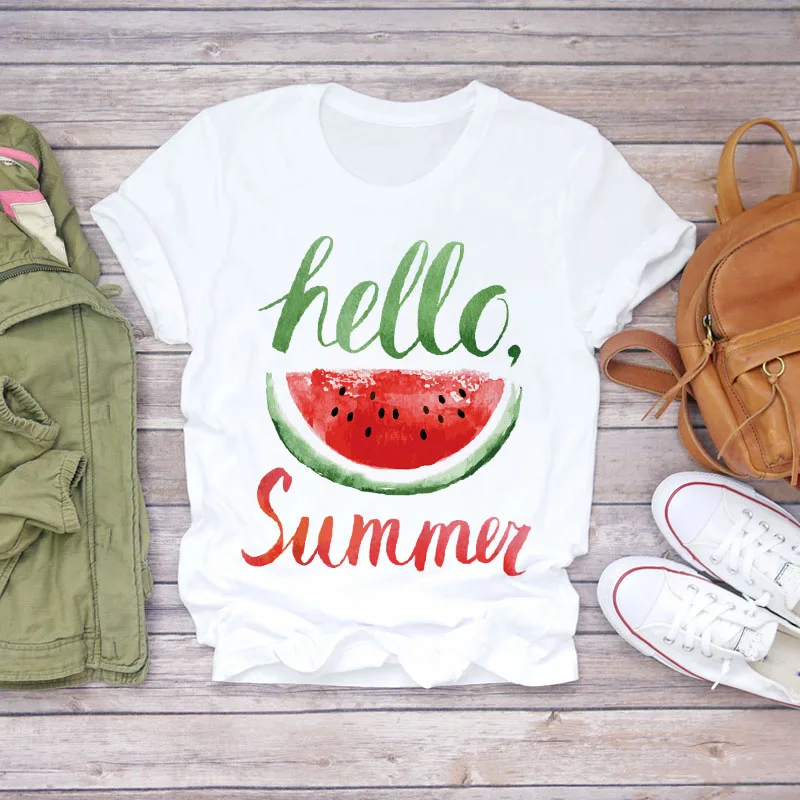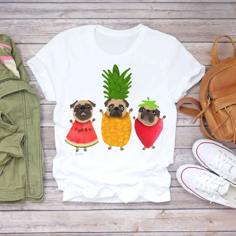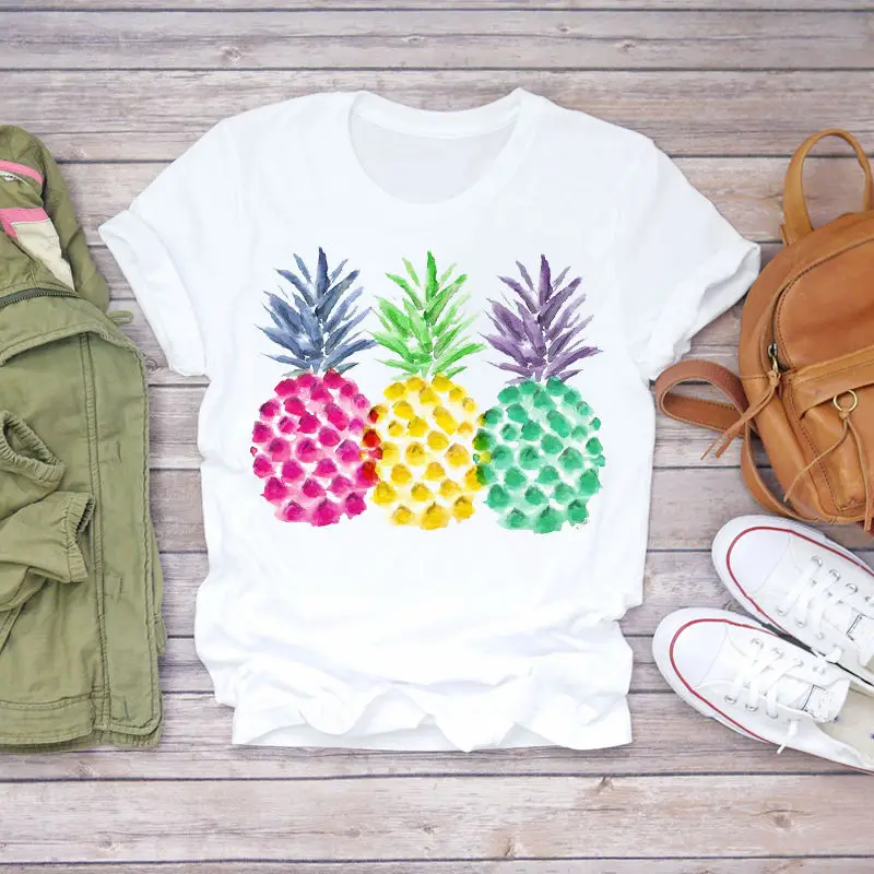 Летнее платье размера плюс, женские футболки с рисунками из мультфильмов ананас акварель с фруктовым принтом Футболка с коротким рукавом для женщин уличный стиль Харадзюку ретро Топ