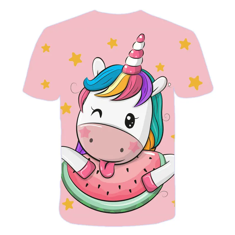 Летние футболки для девочек с От 4 до 9 лет Единорог Футболка Единорог, с красивым мультипликационным принтом, для детей топы, футболки с коротким рукавом, Детская свободная розовая футболка