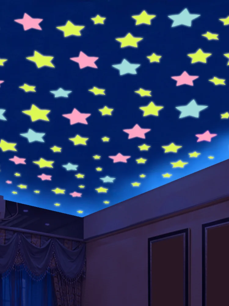 100 шт., декоративные флуоресцентные наклейки на стену в виде звезд