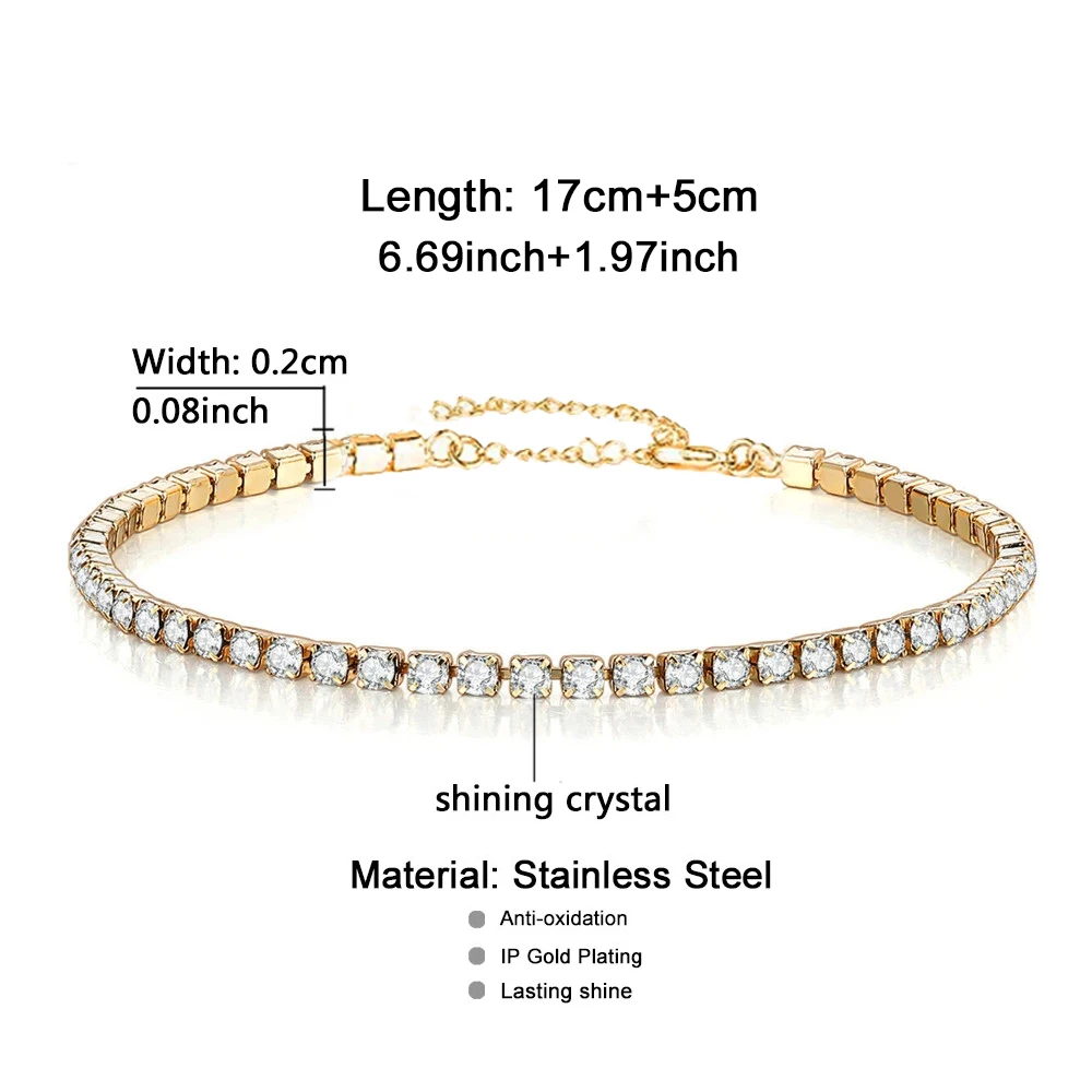 Минималистичные теннисные браслеты из нержавеющей стали с кристаллами для женщин и девушек, простой женский браслет, модные украшения