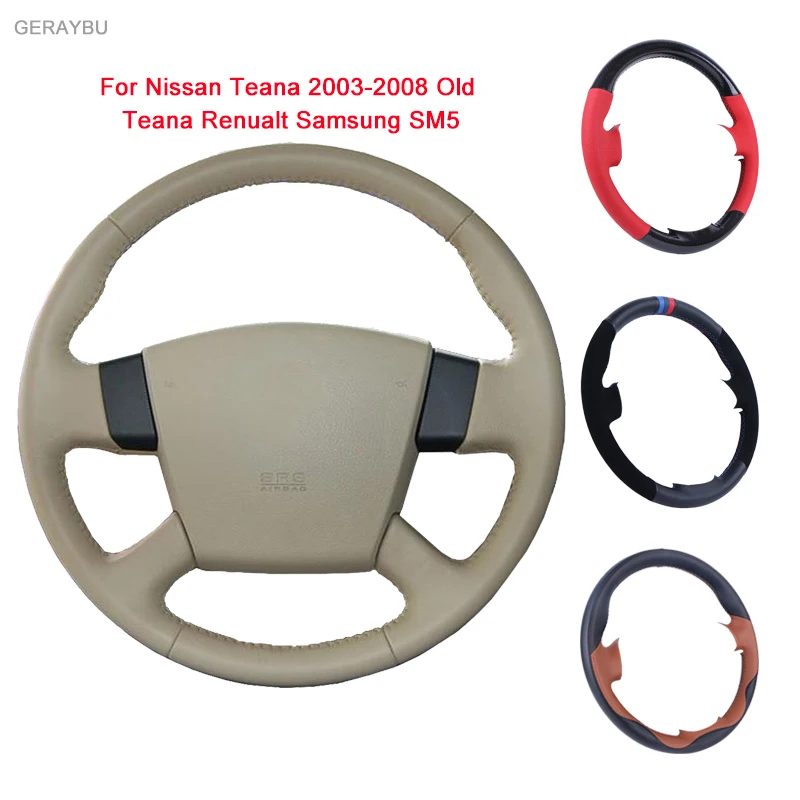 GERAYBU изготовленный на заказ DIY черный кожаный ручной чехол на руль автомобиля для Nissan Teana 2003-2008 Old Teana Renualt Samsung SM5
