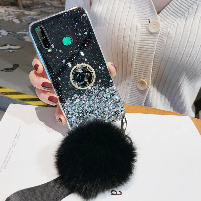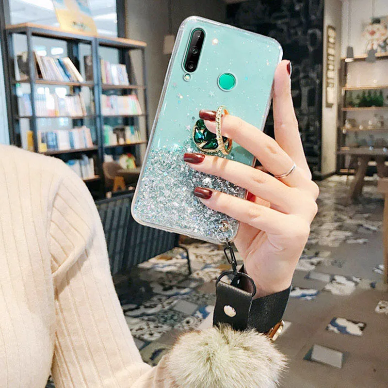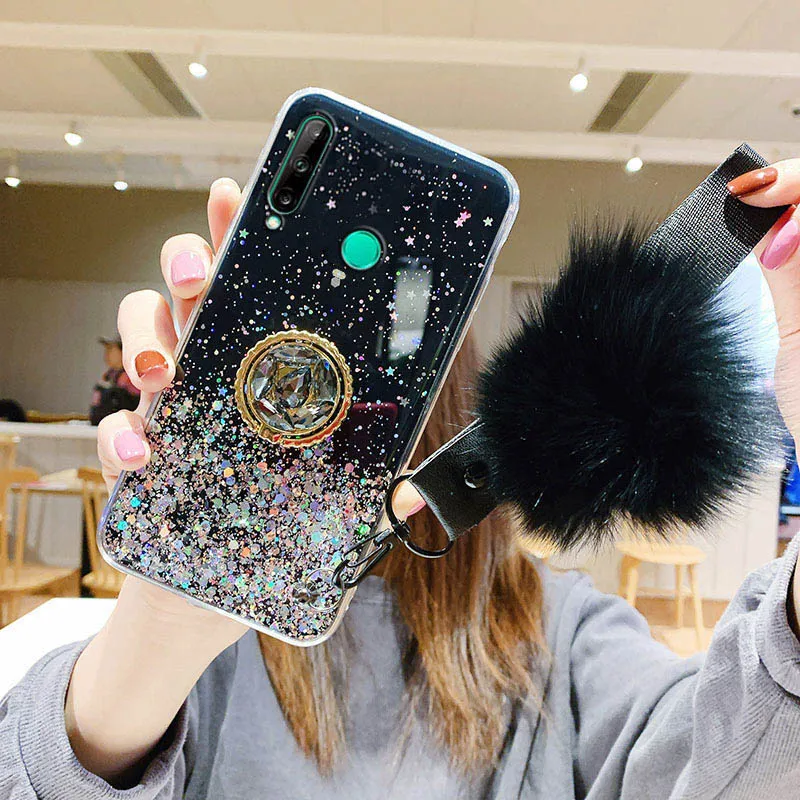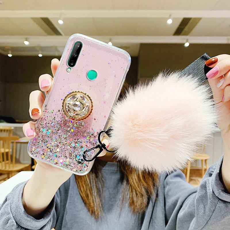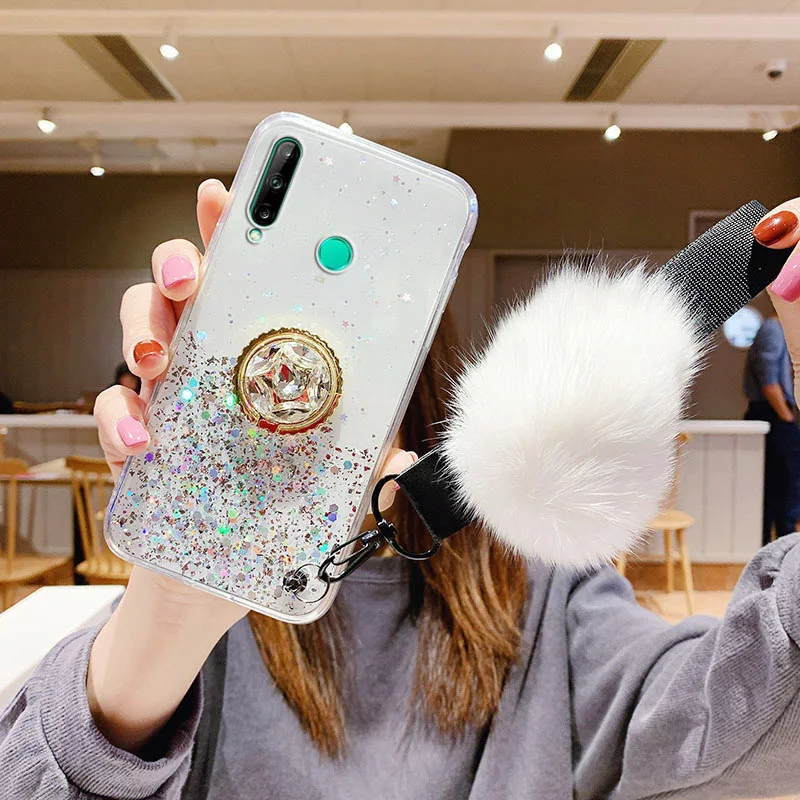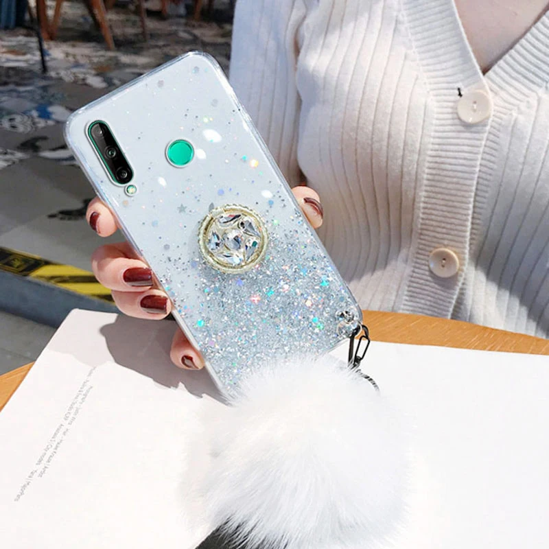 Чехол для Huawei Honor 9 10 Lite 20 Pro 9X 8X 8A 10i, блестящий чехол с кольцом-подставкой для Huawei Honor 9S, 20S, 9C, 9A, 8S, чехлы с помпоном