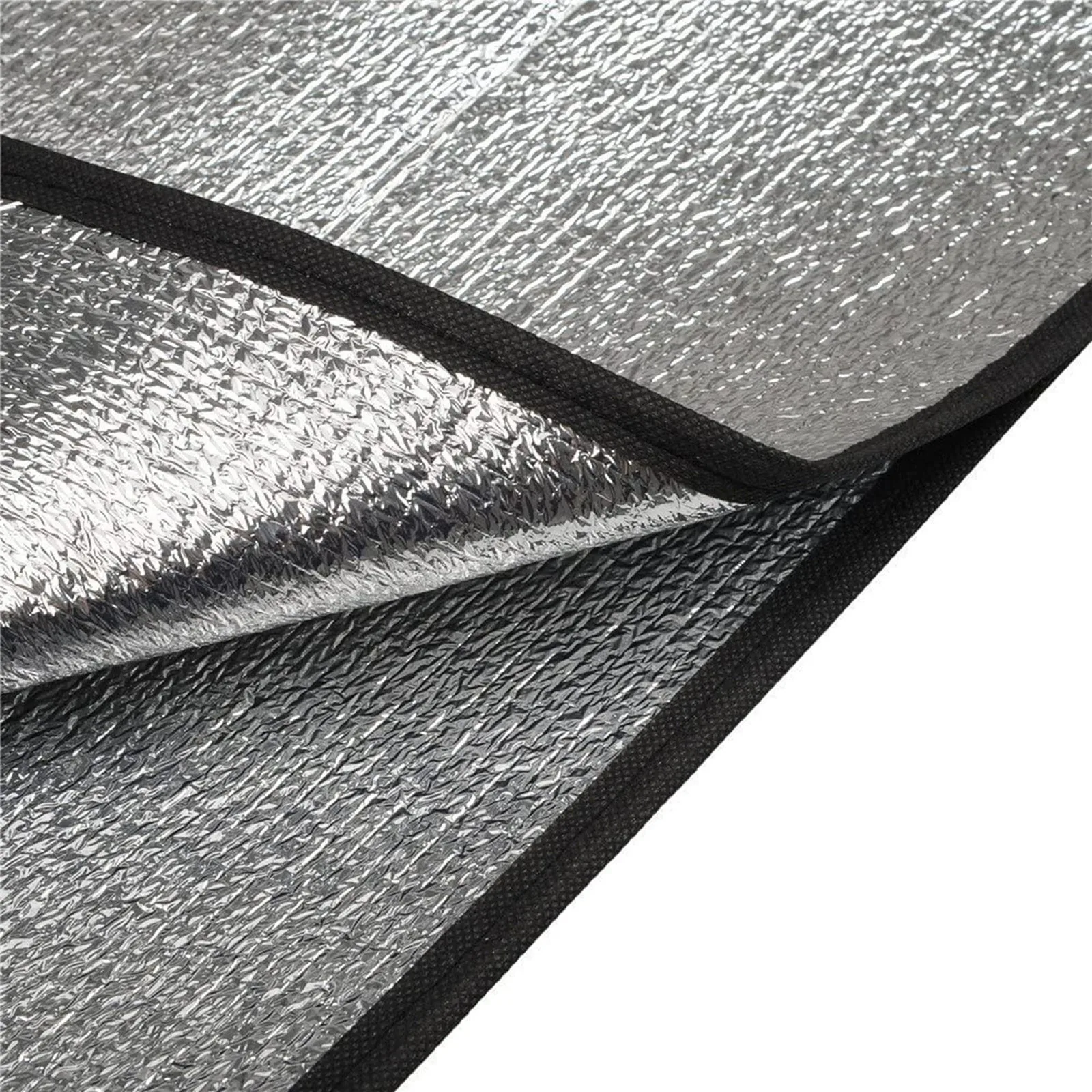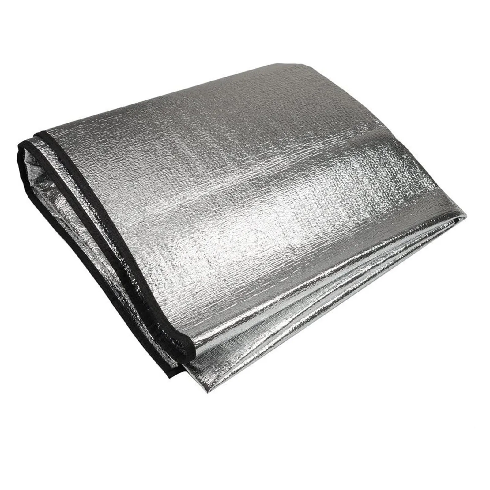 Цвет: Серебро Сделано из Двусторонняя алюминиевая фольга Размер: 200x 200 см/78,7x78,7 дюйма Легкий И портативный, водонепроницаемый, легко моется. Идеально подходит для Пеший Туризм Кемпинг Пикник пляж барбекю Рулон Функция, простота использования и переноскиВ комплекте: