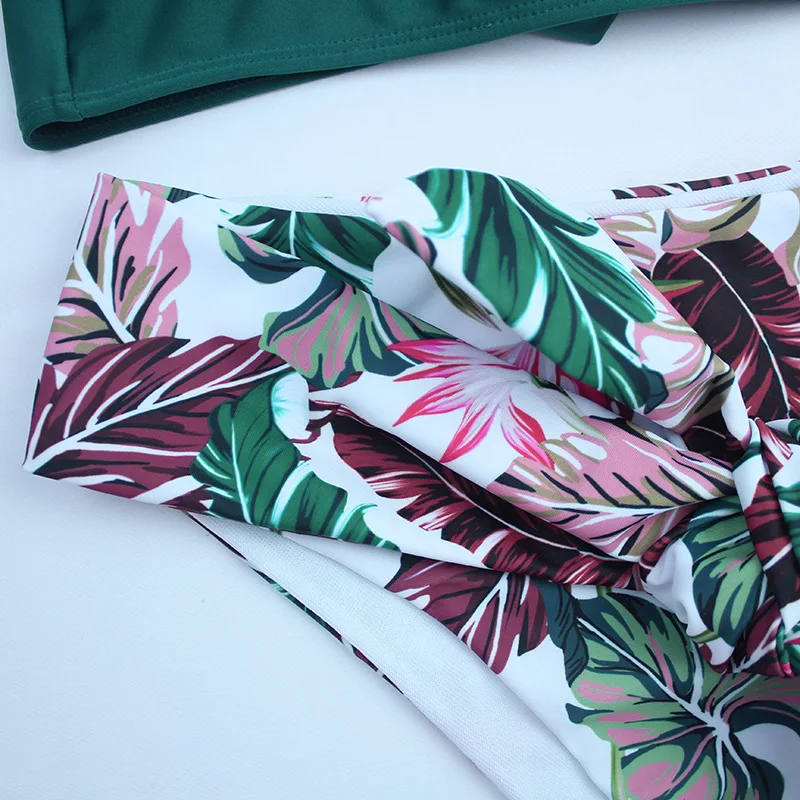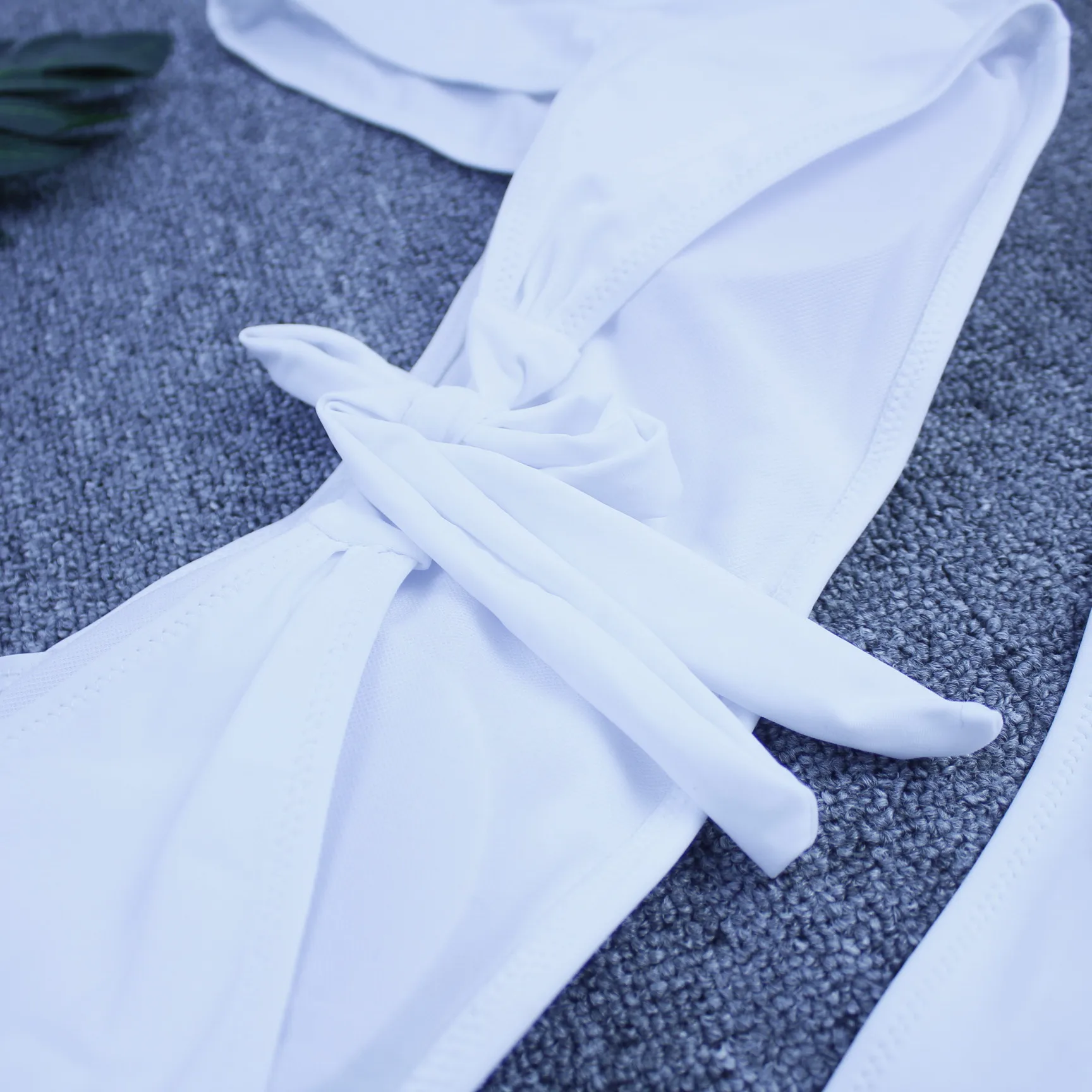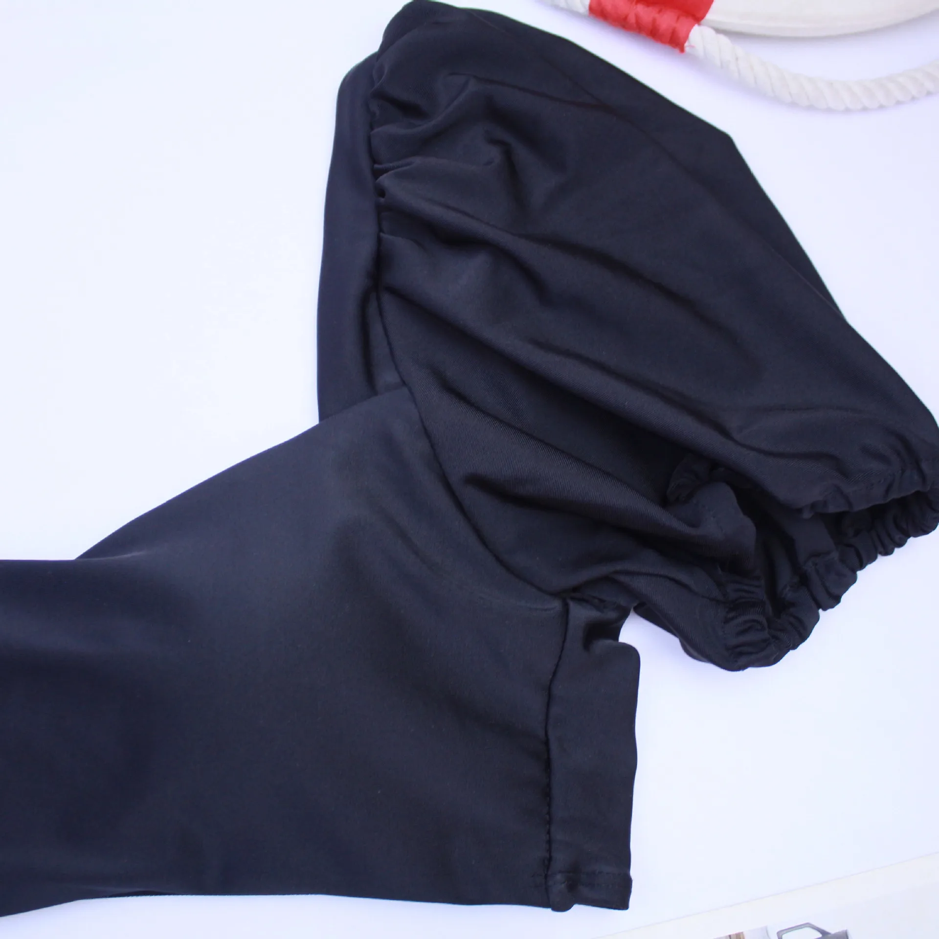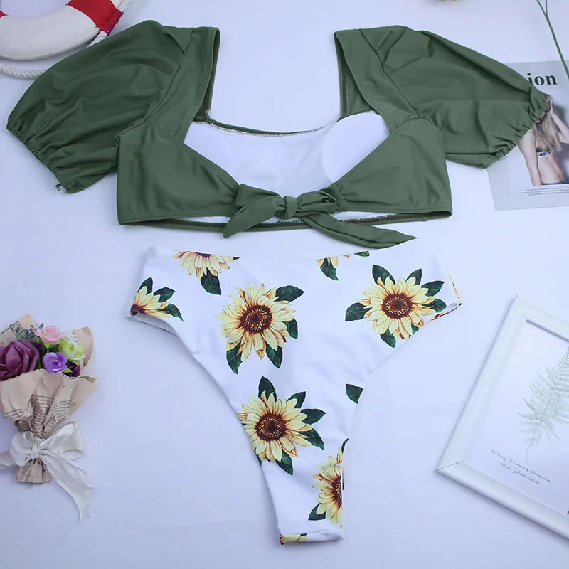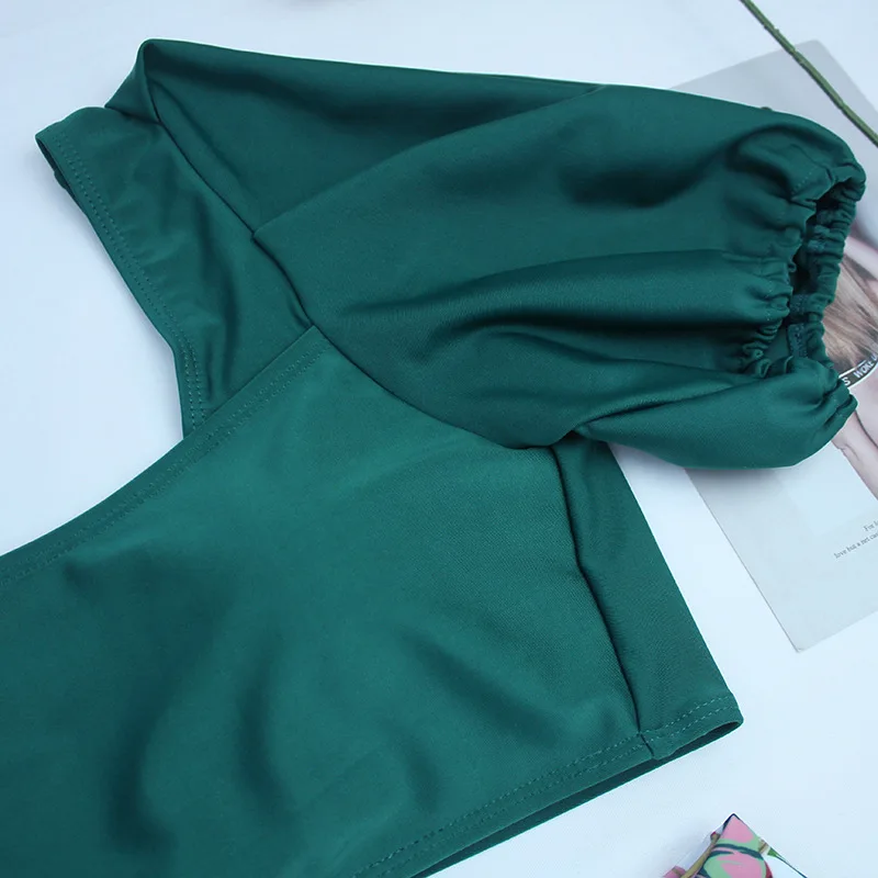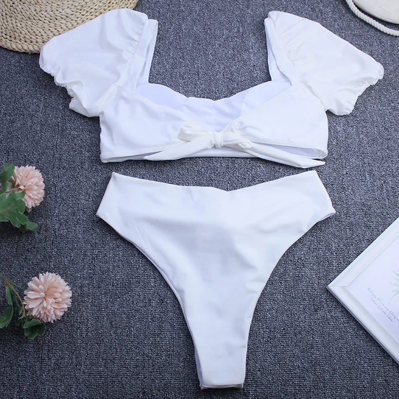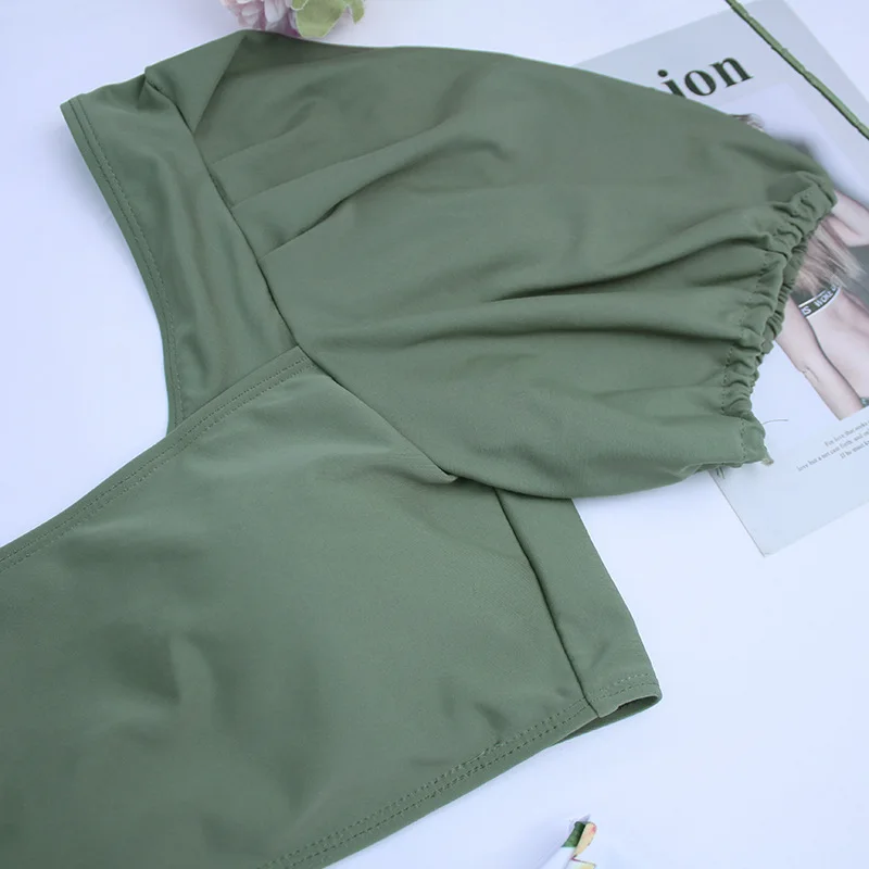 Женский купальник из двух предметов, пикантный комплект бикини, купальные костюмы, короткий топ пуш-ап с пышными рукавами, пляжная одежда, купальник, лето