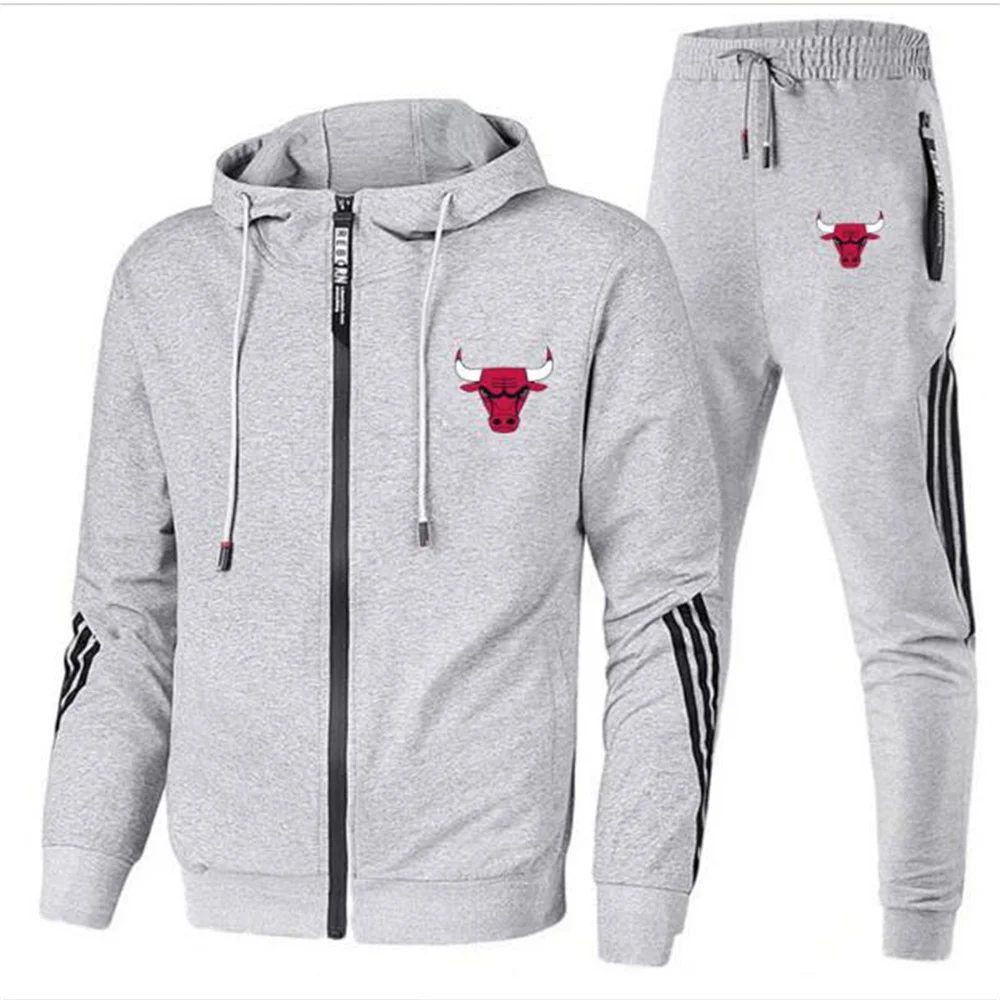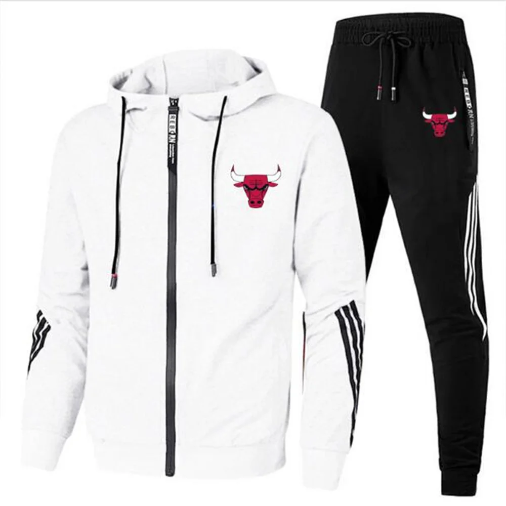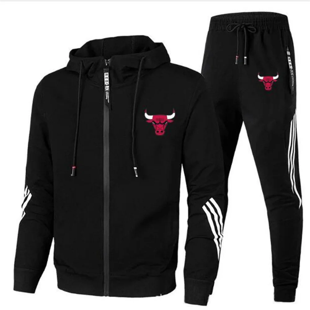Спортивные комплекты из 2 предметов, мужскиеМолодежные хлопковые толстовки с капюшоном и принтом таурена в полоску и на молнии + спортивные штаны на шнуровке с эластичным поясом