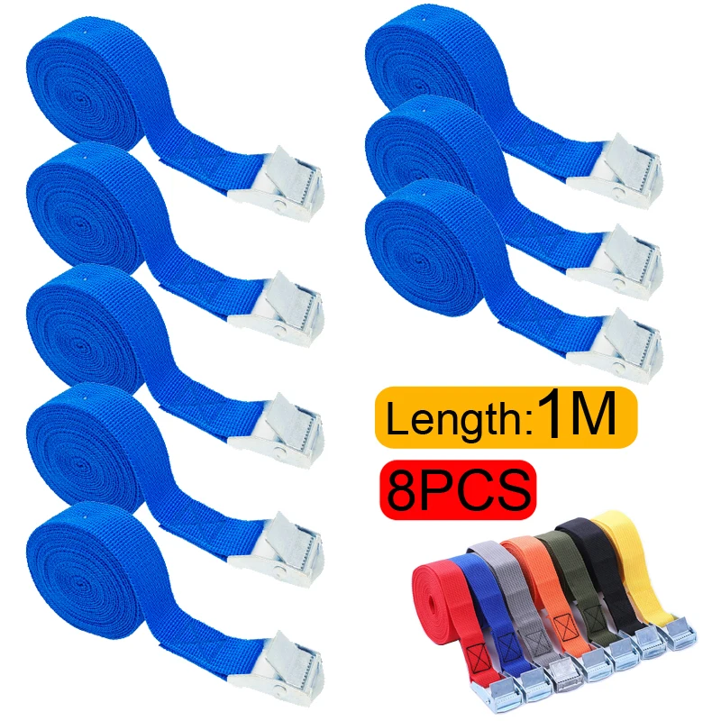 8 шт./лот, 1 м ремень с пряжкой, ремни для груза, для автомобиля, мотоцикла, велосипеда, с металлической пряжкой, буксировочный трос, крепкий Трещоточный ремень для багажа