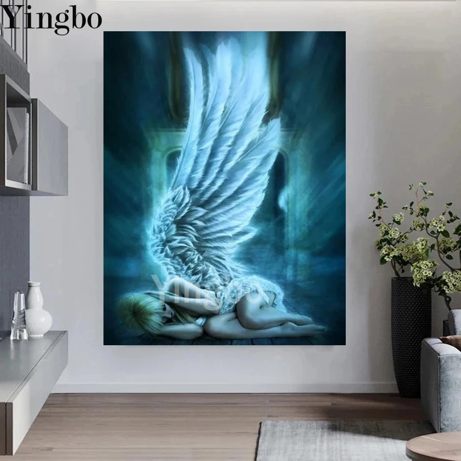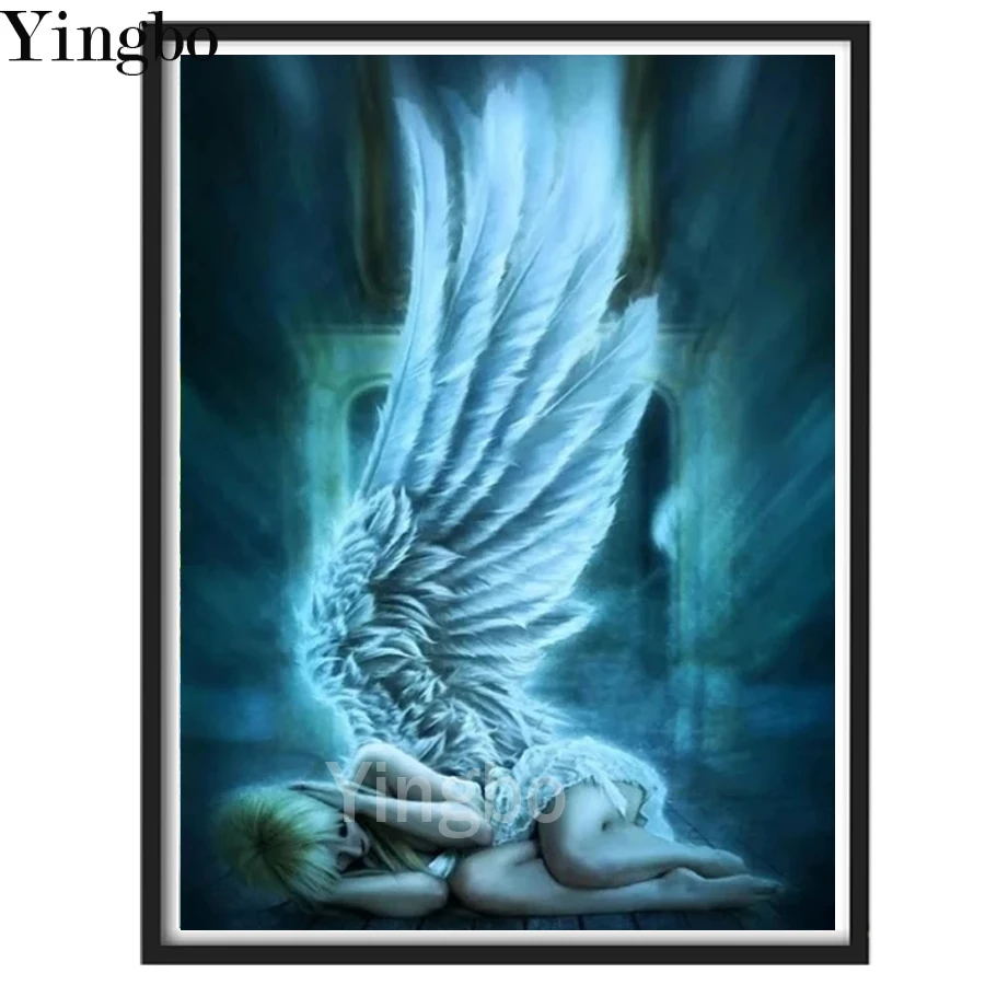 5D Diy алмазная живопись с крыльями ангела камни в форме ромбакруглая мозаичная картина, выполненная в технике алмазной вышивки Набор для вышивания крестиком изделия ручной работы