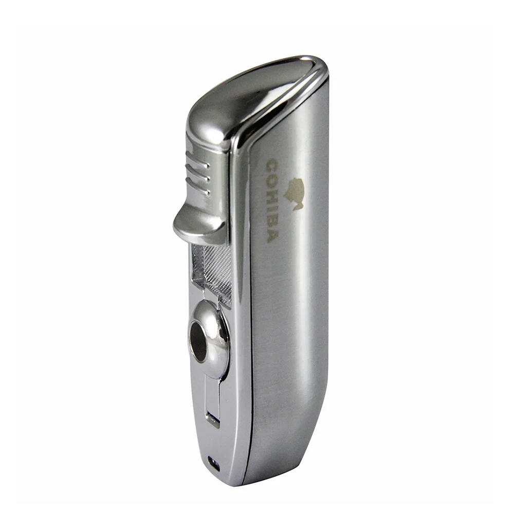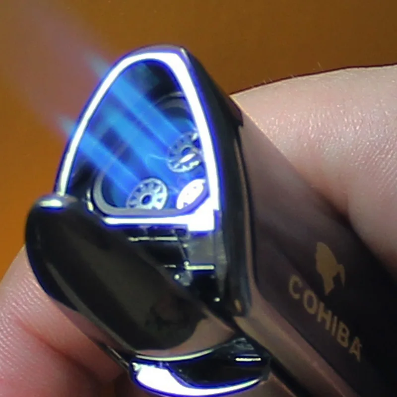 COHIBA 3 факел, зажигалка для сигар, металлическая змея в форме рта, ветрозащитный струйный пламя, зажигалки для сигар с дыроколом, инструмент для курения