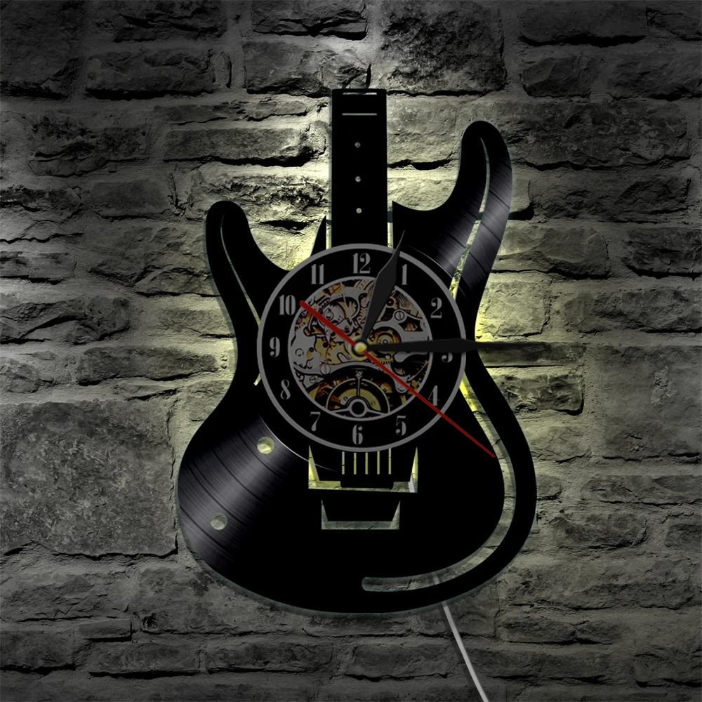 Гитара настенные художественные часы Рок н ролл Музыка Гитарист Винтаж Виниловая пластинка настенные часы музыкальная студия Настенный декор гитаристы подарок