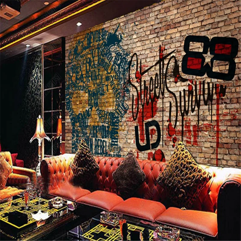 Нордический современный тренд Ретро кирпичная настенная бумага с рисунком черепа Бар фон для стены бумажные промышленные украшения papel de parede 3D