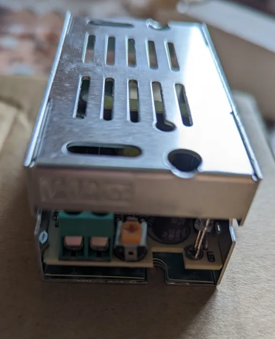 Блок живлення доставлений. Без пошкоджень, в добротній упаковці. Вихідна напруга 12.2 V. Є потенціометр для регулювання вихідної напруги. Максимальну виставив 14.92V. Індикатор червоного кольору. Придбав для підключення світлодіодної стрічки з невеликим споживчим струмом.