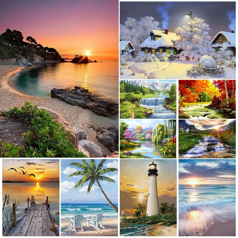 Алмазная 5D картина сделай сам, пейзаж, закат, пляж, водопад, полный набор для вышивки, мозаика, искусство, картина Стразы, домашний декор