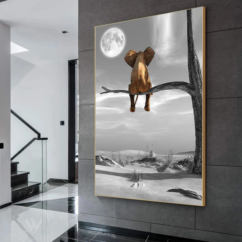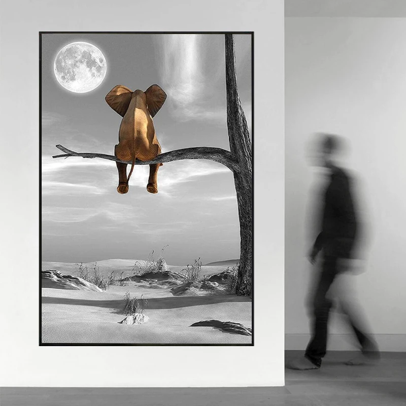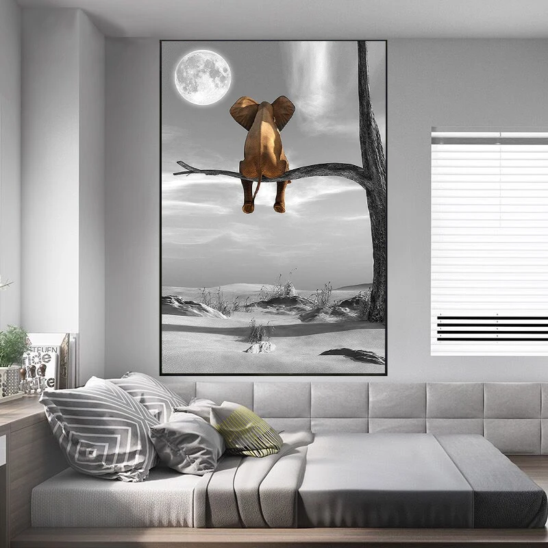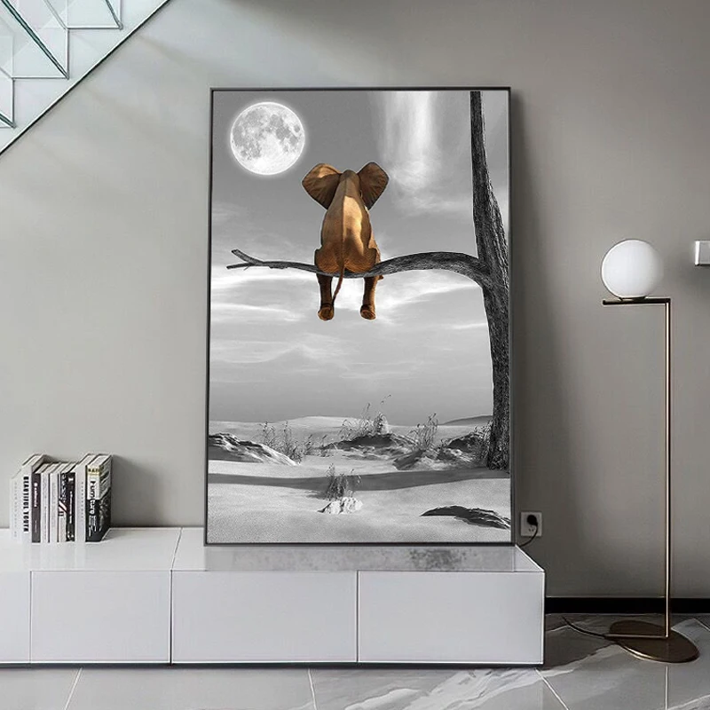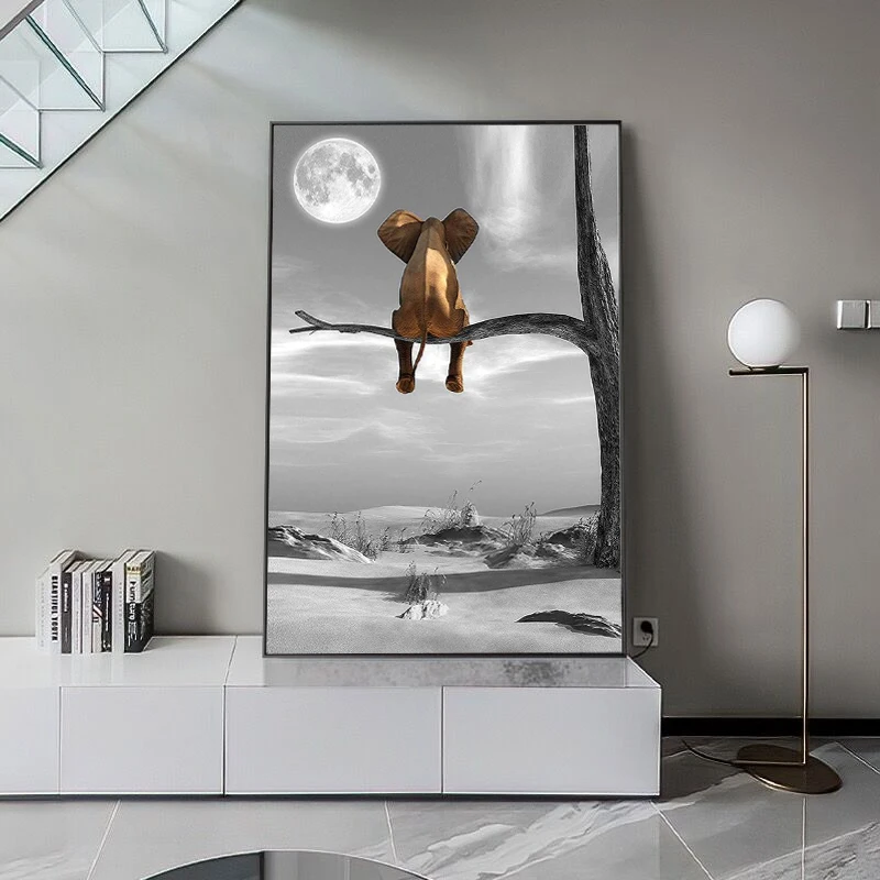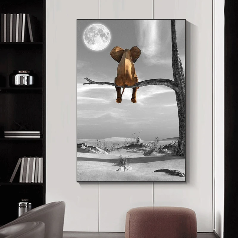 Картина на холсте с изображением слона на дереве, животных, Луны, скандинавские плакаты и принты, Настенная картина для детской комнаты, домашний декор, квадраты