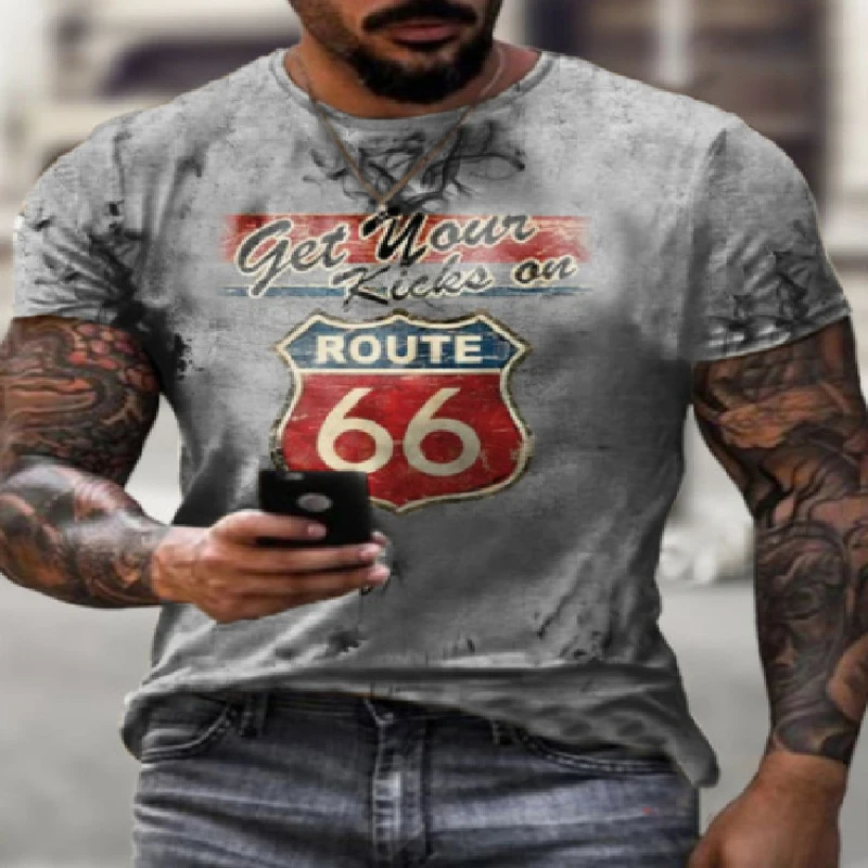 Футболка мужская с круглым вырезом, модная повседневная тенниска свободного покроя, Винтажная Майка с принтом мотоцикла 66, уличная одежда, лето