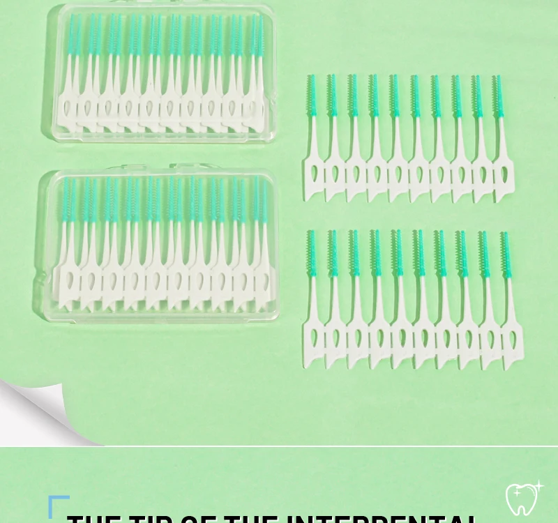 * Силиконовые Мягкие межзубные зубочистки имеют мягкие и удобные щетинки, которые могут аккуратно удалять зубной налет, очищать продукты и массировать десны. Мягкие силиконовые щетинки легко вставляются в большинство зубов, тем самым устраняя зубной налет, который часто происходит при болезни десен и не может быть тронут зубной щеткой. Поэтому, это, безусловно, идеальный инструмент для чистки полости рта для вас и вашей семьи, вы должны иметь