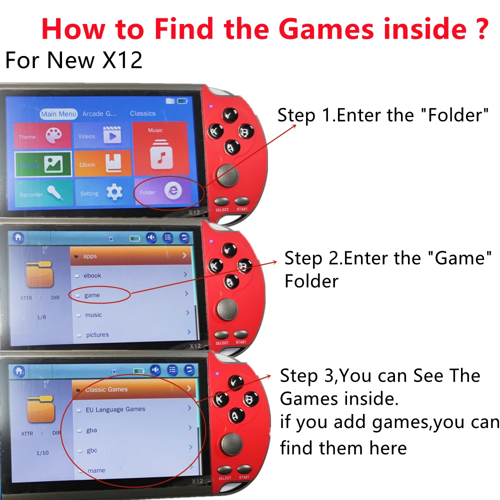 Почему стоит выбрать эту игровую Консоль: 1, обновить аппаратное и программное обеспечение для лучшей игры. 2, предварительно загружен в более чем 1500 бесплатных игр внутри. 3. Часть списка игр на изображениях ниже, мы собираем самые классические и хорошие игры, чтобы поместить их внутрь. 4. Название игры на английском языке. 5. Большинство языков игр-английский, некоторые-японский и китайский. 6, поддержка добавления большего количества игр самостоятельно. 7. Если вам нужно больше игр, пожалуйста, свяжитесь со мной, я помогу вам скачать игры. 8. Поддержка ТВ, ТВ-кабель внутри коробки посылка. 9, наша компания очень профессионально продает игровую консоль, если вам нужна другая игровая машина, вы можете найти больше в нашем магазине. Характеристика: 1. Многофункциональная игровая машина: это многофункциональная консольная игровая поддержка, включая поддержку просмотра изображений, просмотра видео, прослушивания музыки, чтения электронных книг и т. д. 2. До 29 языков: поддержка до 29 языков. Независимо от того, где вы находитесь, вы можете найти правильный язык. 3. Двойные джойстики легче использовать в играх. Более того, размер прост в транспортировке. 4. Емкость 8 ГБ, даже если чтение поддерживает tf-карту до 32 Гб, также обеспечивает большую емкость. 5. Подключение внешних устройств: USB и ПК устройства могут быть подключены для загрузки игр и использовать av-интерфейс для получения визуального опыта на большом экране телевизора. Даже с 5,1-дюймовым экраном, его в такой обуви вы будете чувствовать себя идеальное удовольствие. Параметры: 1, Материал: АБС-пластик 2, Экран Размер: 5,1 дюйм (ов) 3, устройство чтения карт памяти: 8 ГБ/32 ГБ, 4, Цвет для заказа цвета: черный, белый, синий и красный цвета 5 игр: предварительно больше чем 1500 игры 6 Процессор: ATJ2279 Процессор, 128-bit аркадных игр 7, Поддержка игры: Поддержка мульти-формата игры: для SNes, для ПФС, для платформ NEOGEO, GBA, для NES, для Gbc для Sega MD и т. д. 8, расширение tf-карты: До 32 ГБ 9, Размер изделия: 190*87*17 мм/7,48*3,42*0,66 ''Упаковочный лист: 1 * игровая консоль 1 * Адаптер питания (ЕС/США) 1 * USB кабель 1 * TV Out av-кабель 1 * наушники 1 * Руководство пользователя (на английском/китайском языке) Примечание при покупке: 1, включите кнопку «ВКЛ./ВЫКЛ.» в «ВКЛ.» Или нажмите кнопку «Power», чтобы открыть игровую консоль. 2. В главном меню много игр, другие игры находятся в центре «Игры», их легко найти. 3. Добавьте больше игр, чтобы скопировать ПЗУ с компьютера. 4, на экране есть защитная пленка, она предназначена для защиты экрана при производстве и доставке, когда вы используете игровую консоль, вы можете сначала удалить защитную пленку. 5, у новой машины Нет камеры, нет функции камеры (многие клиенты жалуются, что пиксель камеры низкий, поэтому мы снимаем камеру). Если вам нужно много или оптовые продажи или Прямая поставка, пожалуйста, свяжитесь со мной, чтобы получить скидку