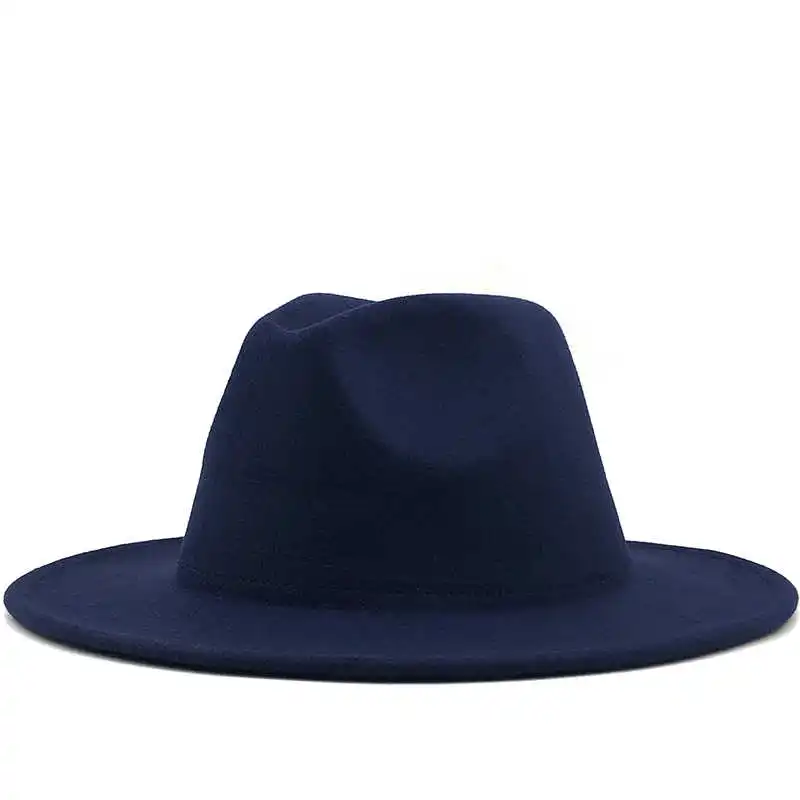 Шляпа фетровая унисекс, с широкими полями, темно-синяя, фетровая, с...