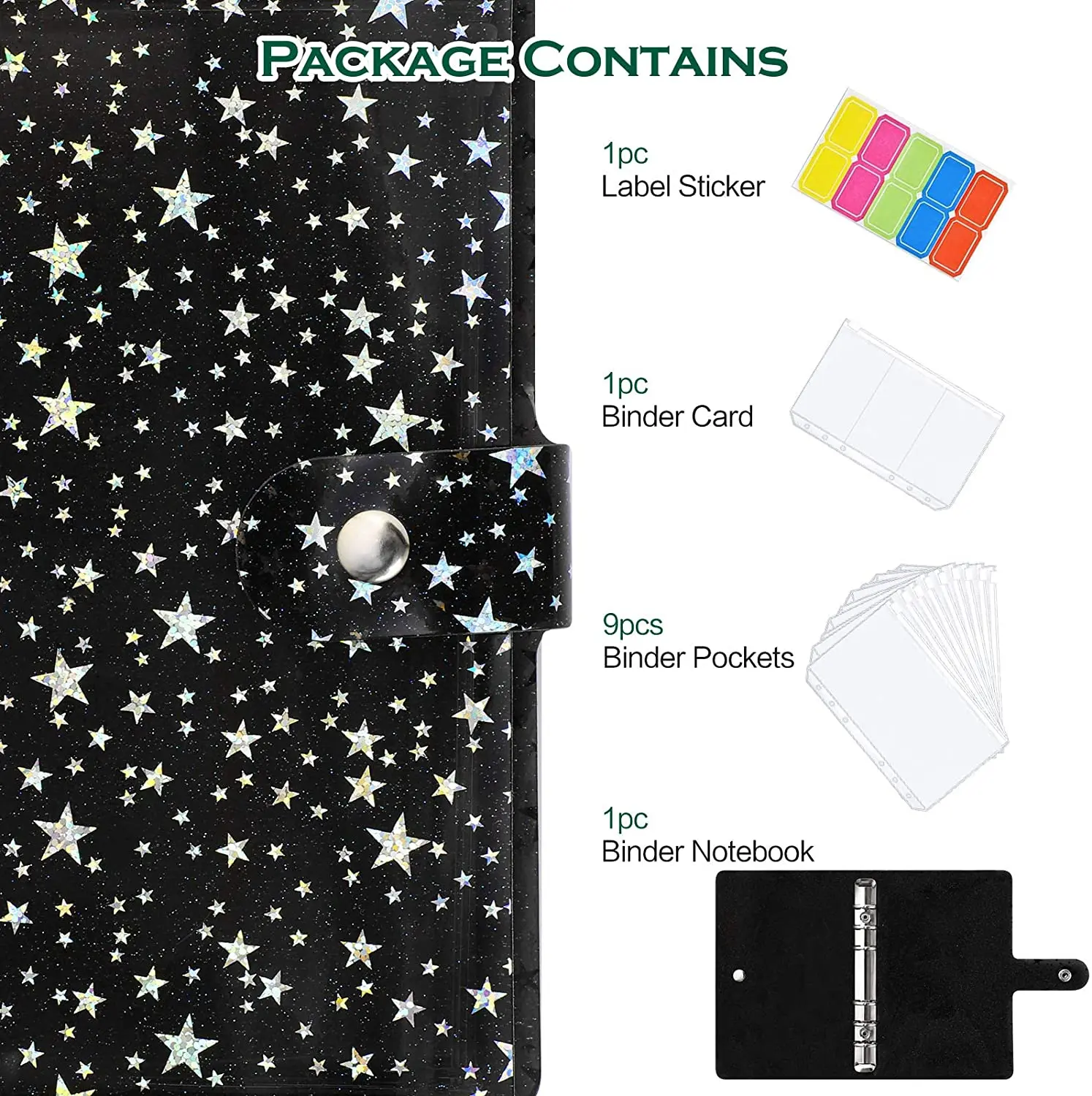 Папка для блокнота A6 с 6 кольцами для организации, 9 карманов для папки A6 с 6 отверстиями и карточка для папки, с наклейкой для удобного управления.