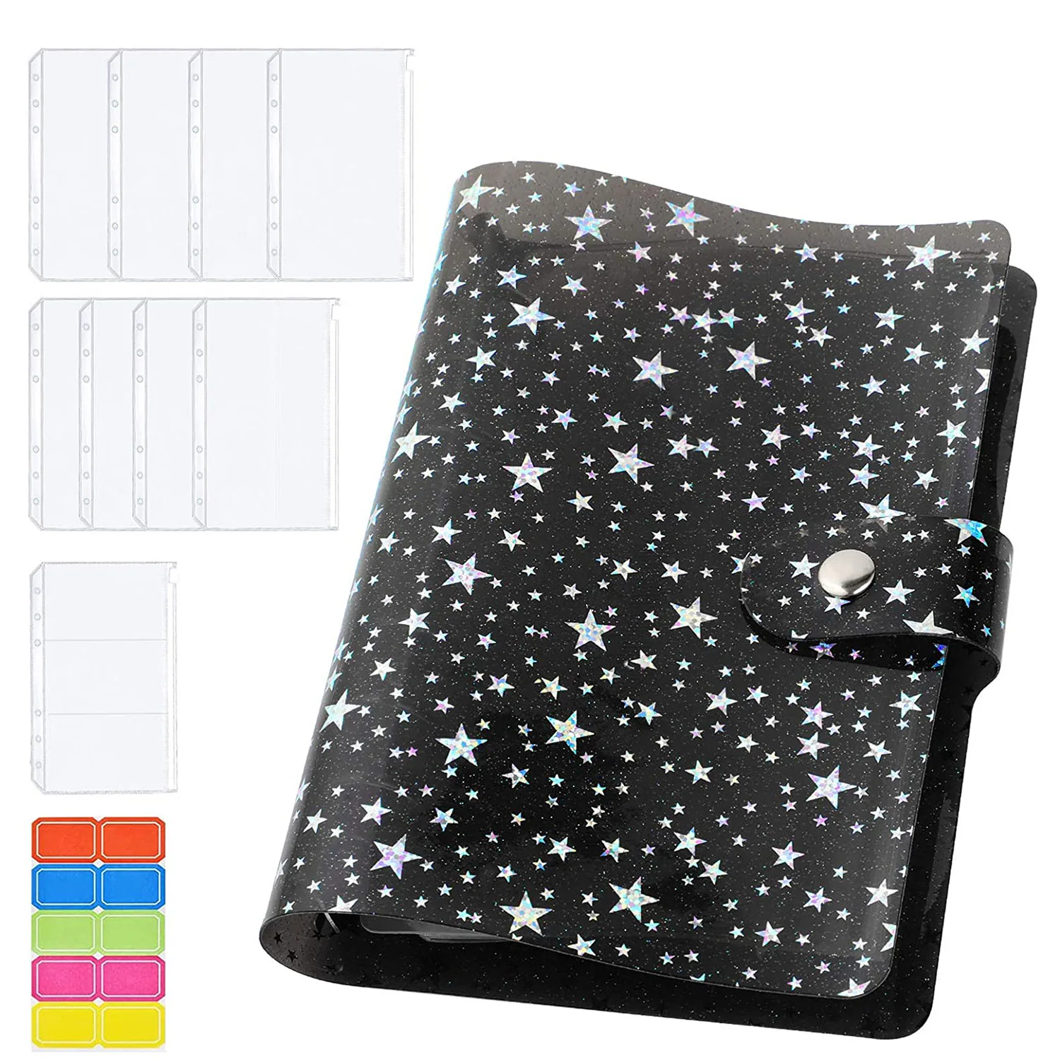 Обложка для переплета, A6, ПВХ, органайзер для счетов, 8 карманов на молнии, 1 карточка для переплета, этикетка-наклейка для денежных конвертов