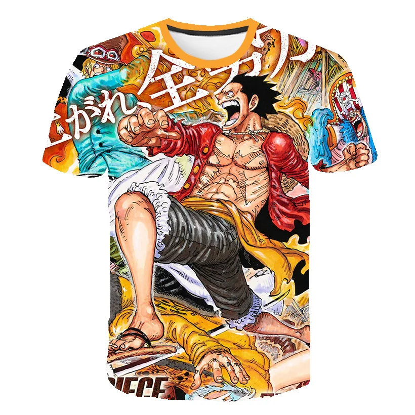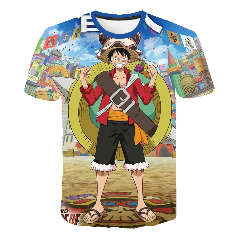 2021 3D мультфильм цельный детская летняя футболка высокого качества для мальчиков и девочек Люфей футболки Для детей, на лето повседневная одежда От 4 до 14 лет
