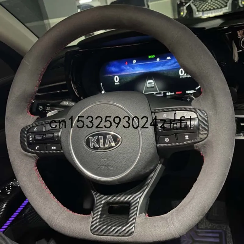 Чехол на руль для KIA K5 DL3 2020-21, сшитый вручную верх, черная алькантара, замшевые автомобильные аксессуары