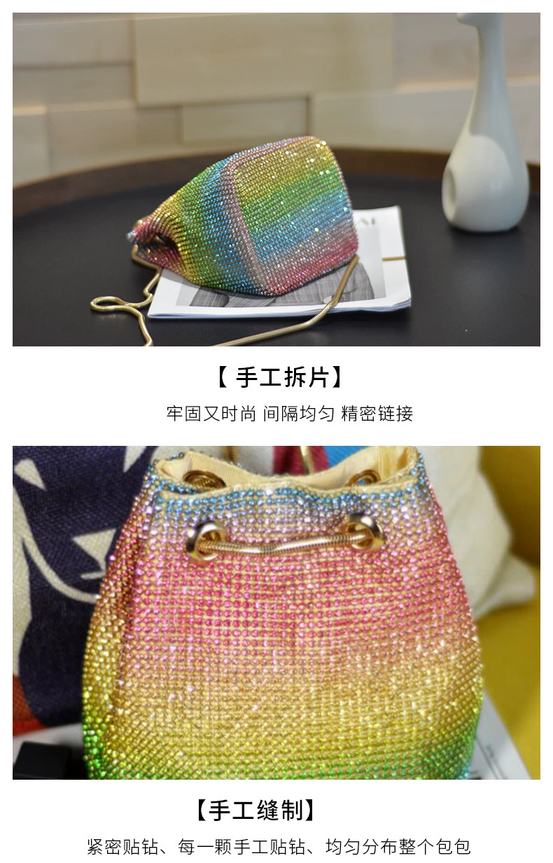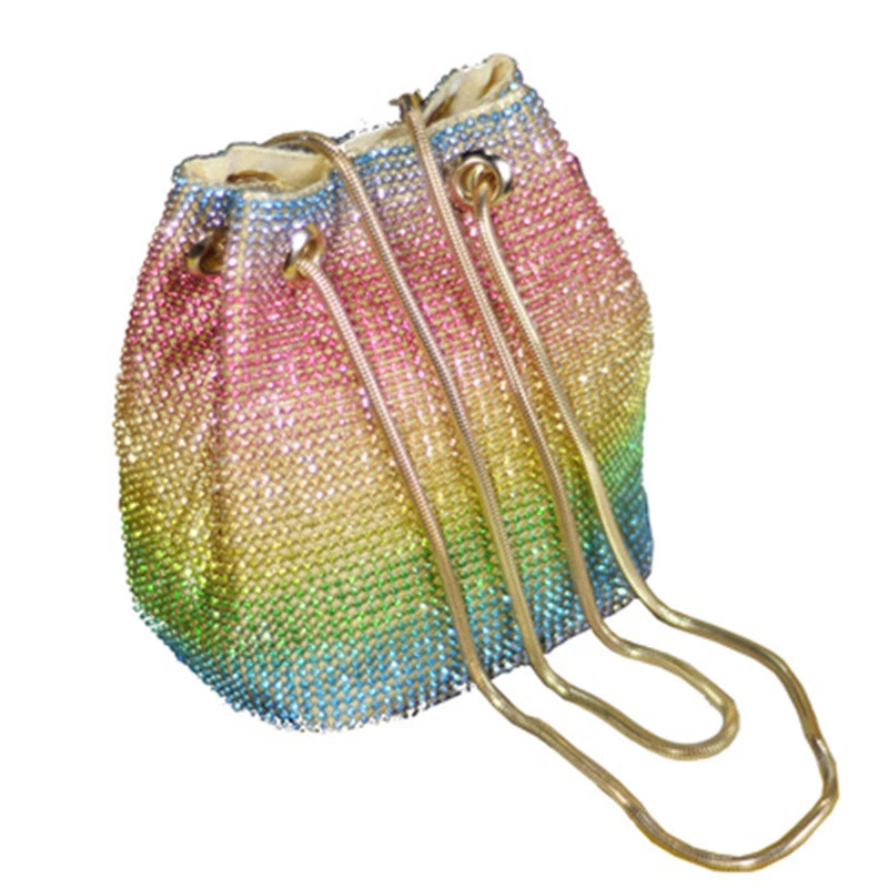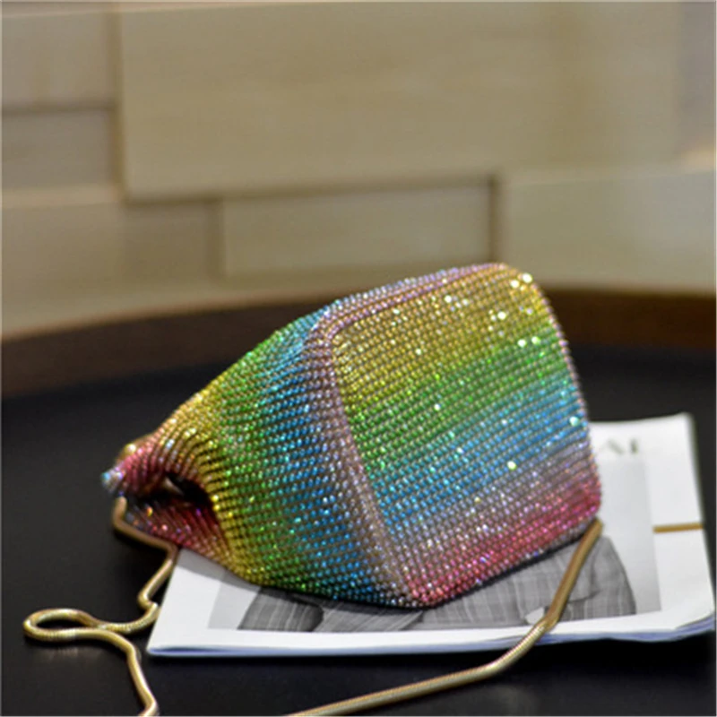 Женская Блестящая сумка через плечо с блестящими стразами радужных цветов, модная вечерняяВечерняяСвадебная сумка, кошелек для мелочи, сумки с жемчужинами и ручками сверху
