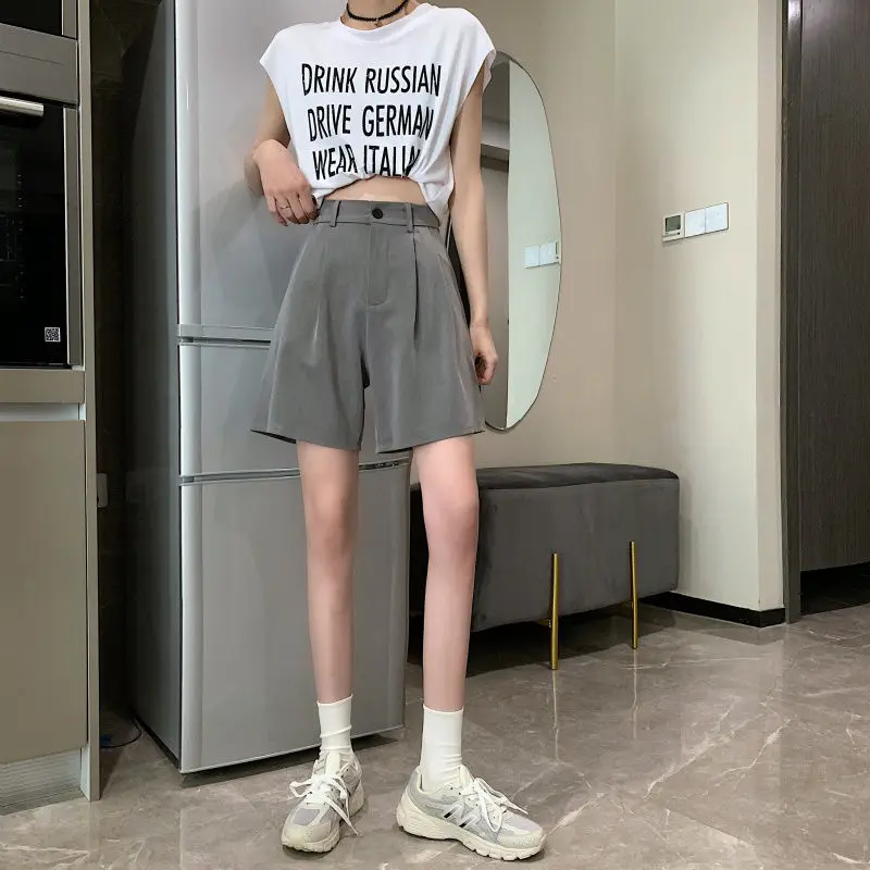 Модные женские шорты с высокой талией, повседневные женские свободные шорты до колена с карманами, женская уличная одежда в Корейском стиле на лето, 2021