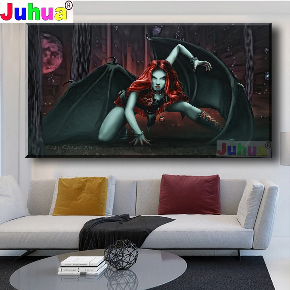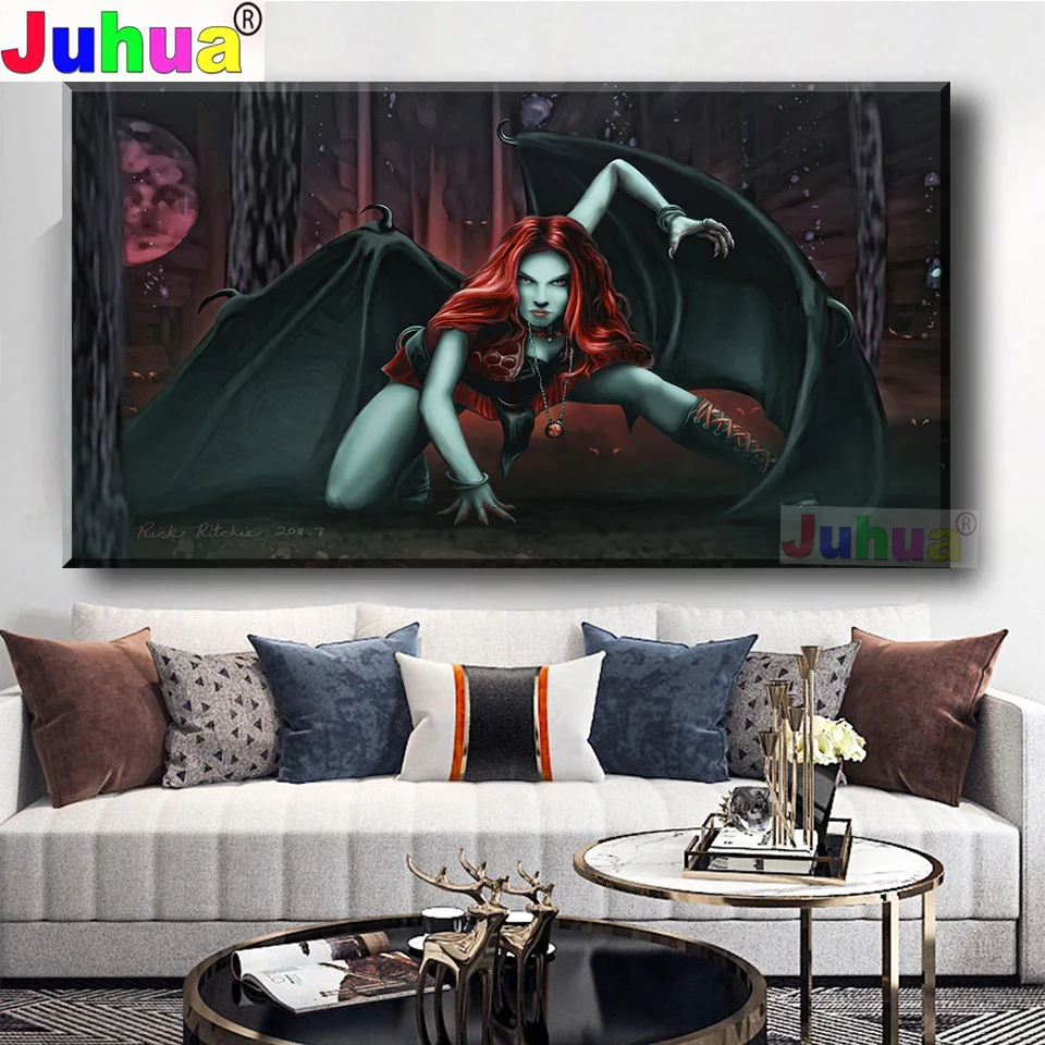 5D DIY Алмазная картина Готическая летучая мышь Wampire Женская картина Стразы Алмазная вышивка круглая дрель Портрет девушка подарок