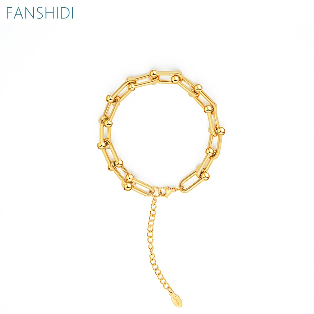 FANSHIDI нержавеющая сталь большой сильный браслет для женщин на не сужающемся книзу массивном цепь золотая Цвет Пряжка подковы яркие ювелирные изделия, ювелирные изделия