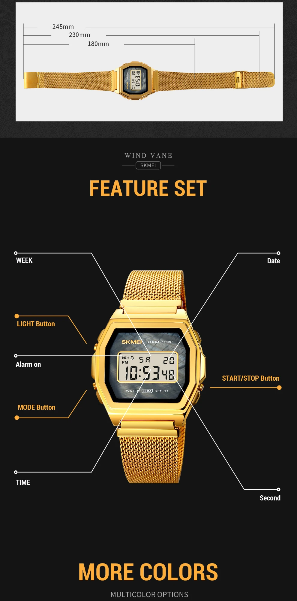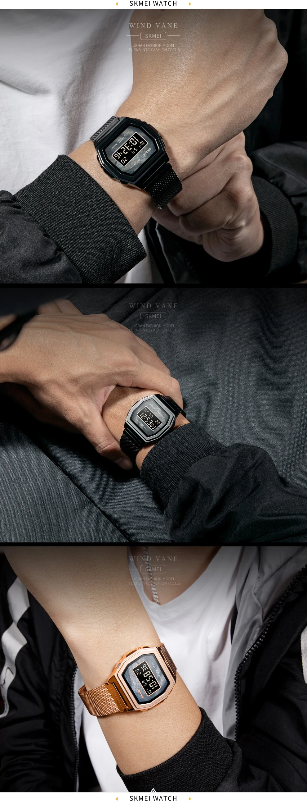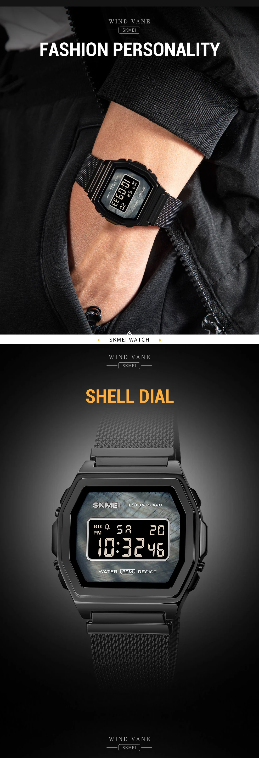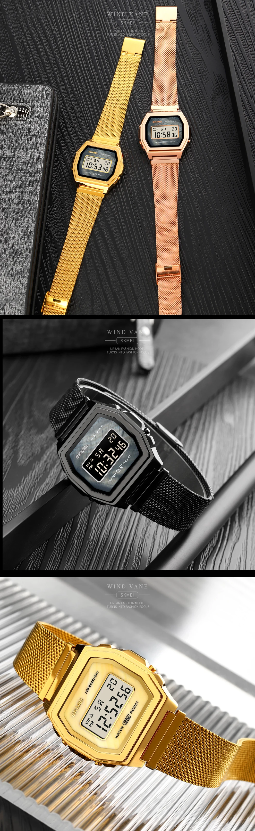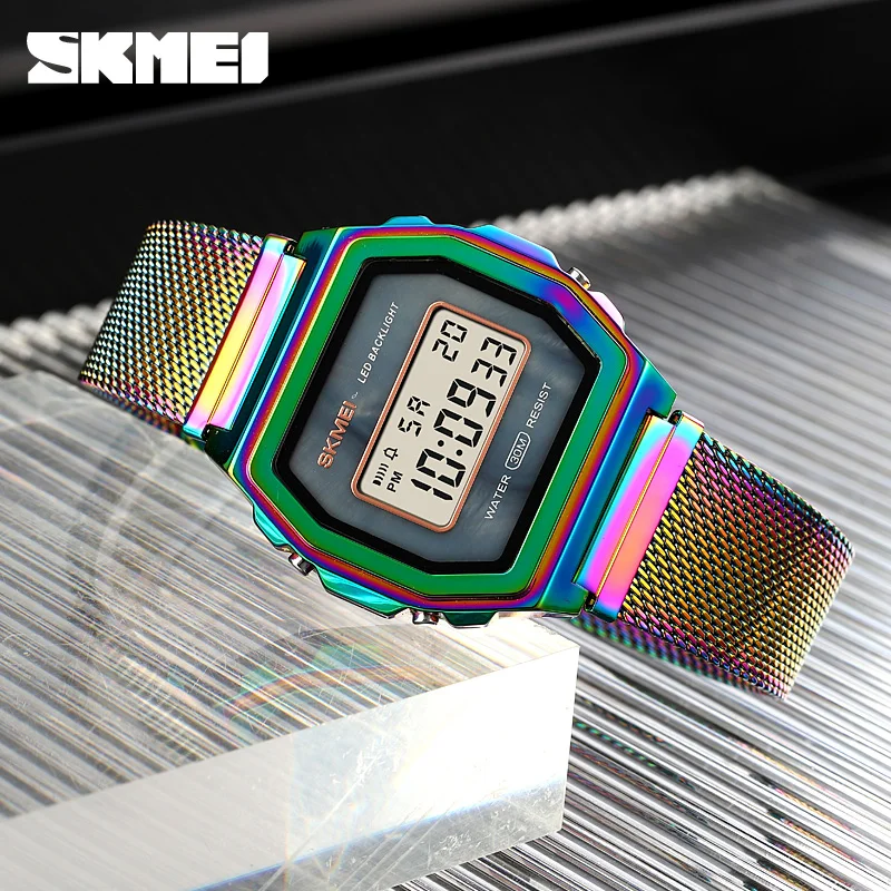 Часы наручные SKMEI Мужские Цифровые, модные роскошные электронные светодиодные, с сетчатым браслетом, с отображением недели и даты, 2021